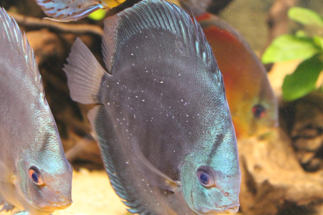 Cobolten är mörk eftersom han nog inte gillar/gillade sina prickar - men ni ser skillnaden. Den lilla blå/turkos, som alltid är framme, äter som en gris av allt och är allmänt alert ser ut så här just nu. Kolla på inlägg 3572 så ser ni skillnaden.