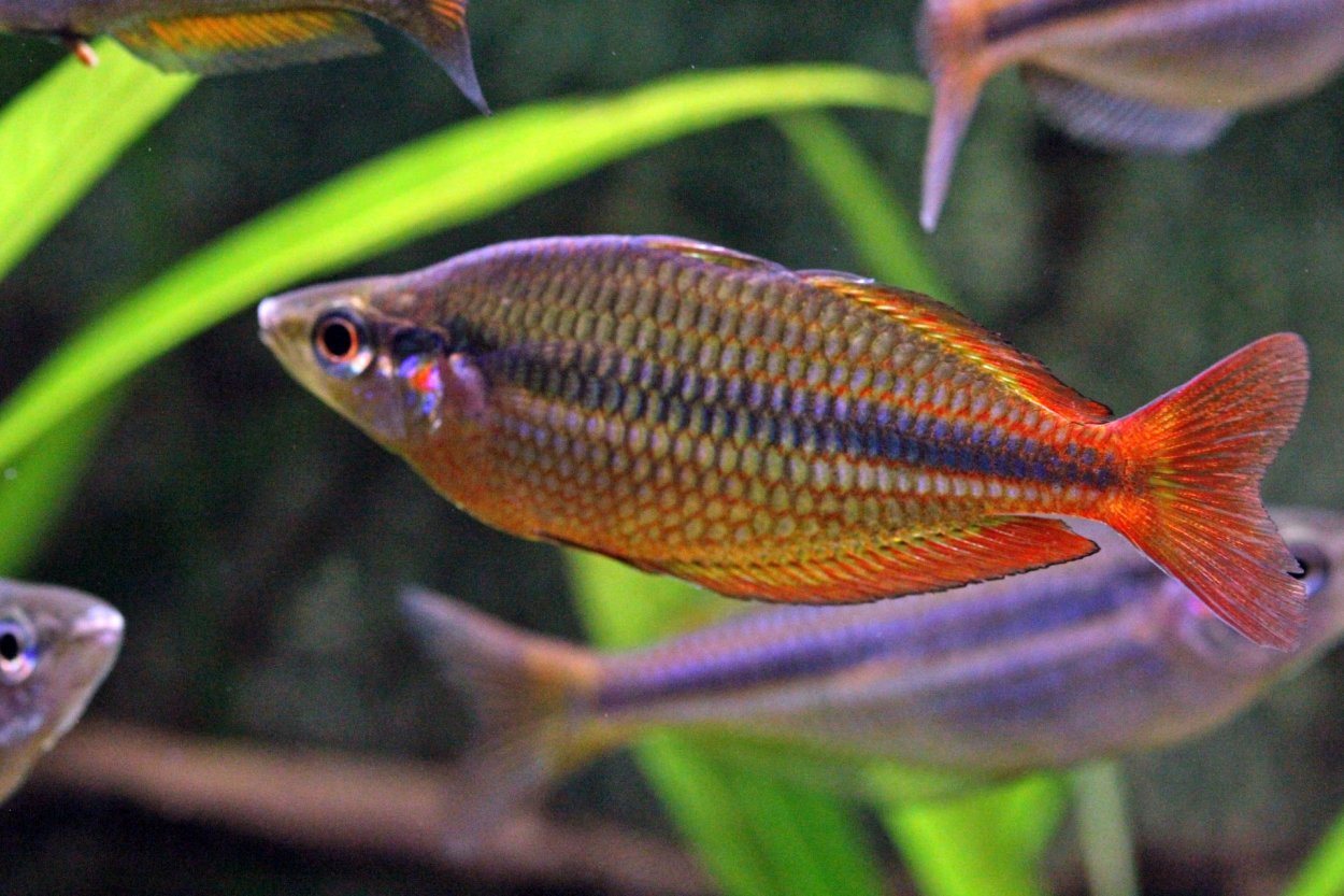 Läste idag på ett annat forum, att vissa arter av regnbågar (från sin ursprungliga miljö) används till att utrota myggor - inte så konstigt då, att dom helt flippar ur av matlust, när det bjuds på svarta/vitamygg