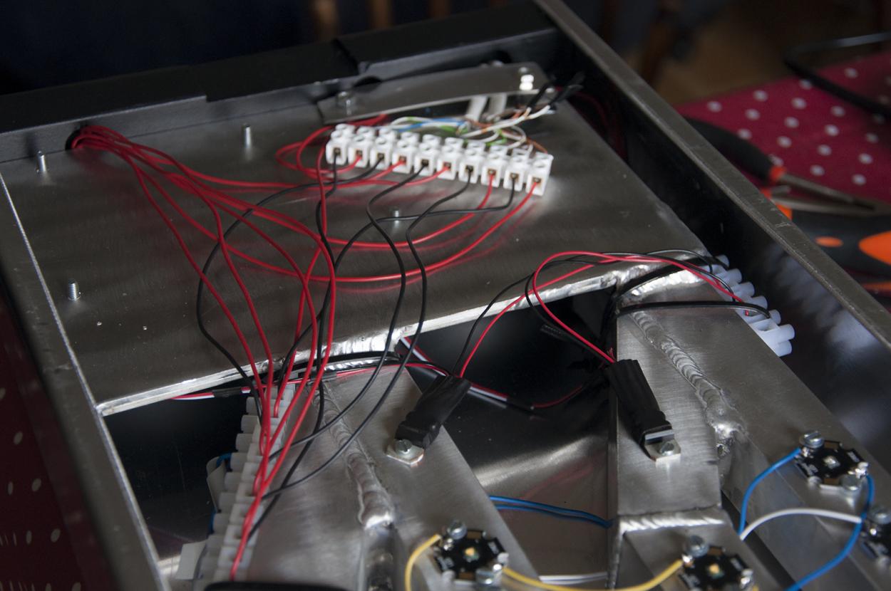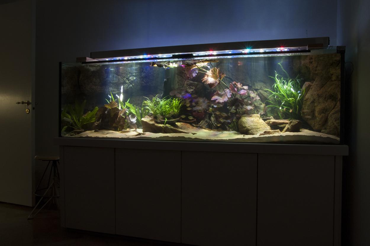 Kolla Ebay och andra ställen, det börjar hända grejer i LED-världen, och det har verkligen hänt grejer sen jag började bygga på det här projektet. Jag kör mina på 20-30% (lite olika beroende på vilket drivdon), och det räcker till gott, nu vet jag att jag kan köra detta på växtakvarium också och tillgodose växterna mer än väl, mina lotus har dubblat sina bladstorlekar sen jag började köra med rampen, göder bara med PMDD. Om man jämför vad rampen kostar med elförbrukningen på T8, T5 eller mardrömmen MH så sparar man igen dom pengarna ganska snabbt. Föredelen är ju också att LED inte utvecklar någon värme i akvariet alls.