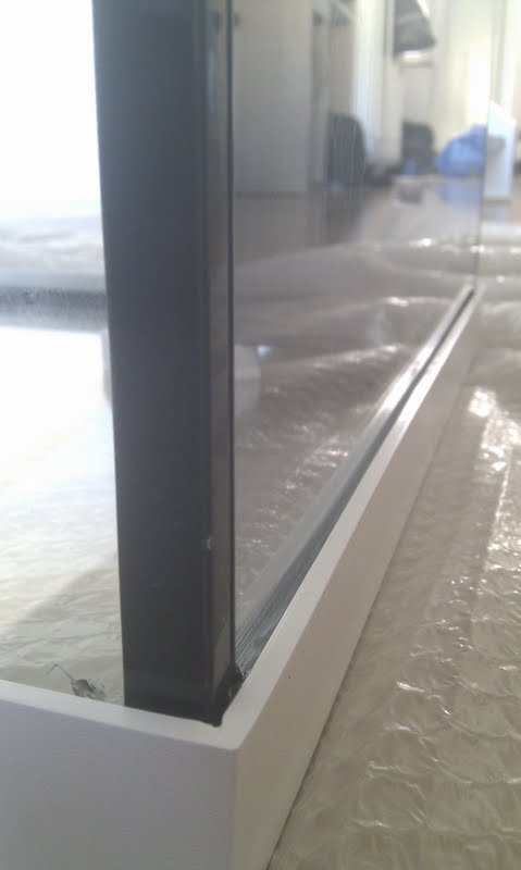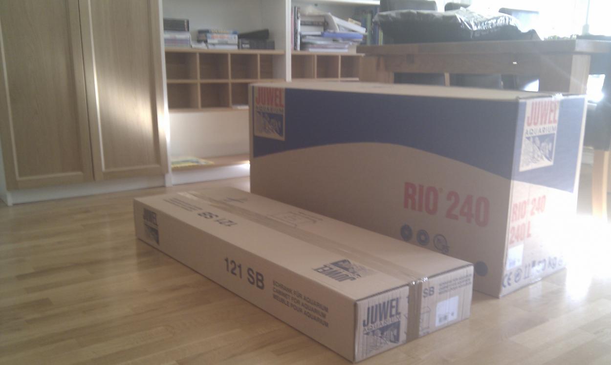 Idag på nationaldagsmorgonen var det äntligen dags för att packa upp akvariet, känslan jag hade var som ett barn på julafton. Jag fick relativt omgående också uppleva besvikelsen som ett barn på julafton. Juwel montören hade varit slarvig med silikonandet, svarta fläckar och strängar fult synliga lite här och där. Efter ännu noggrannare undersökning hittade jag en flis på kanten höger front.