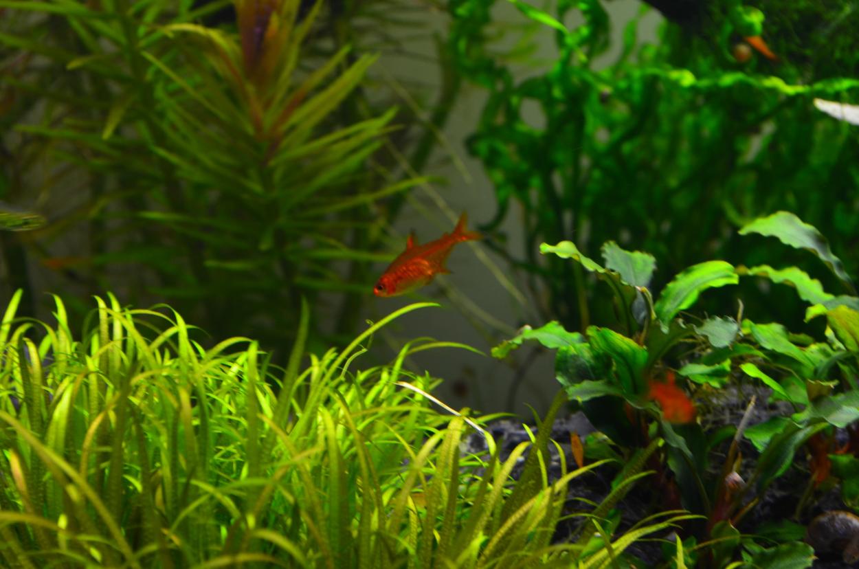 Jag har inga corys i detta kar, bara ancistrusar som bottenfisk, har också räkor som "städare". Det är som du säger ElinR inga fria ytor direkt och dessutom soil på botten.