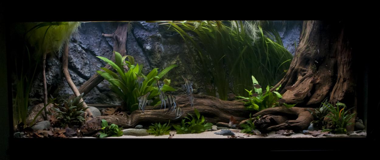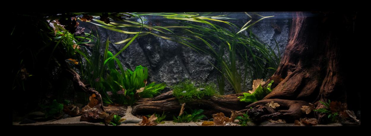 Grymt fint akvarium du fått till. Behandlade du roten innan du stoppade i den?