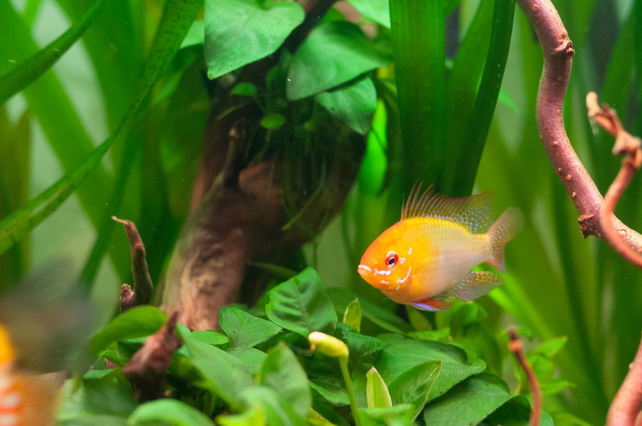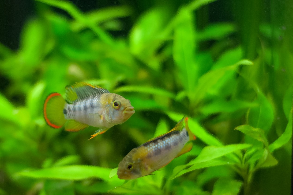 En kul grej som kan vara värt att nämna är baenschis utflykter upp i karet. Visserligen trivs de bäst bland rötter och stenar på botten med eftersom inredning sträcker sig mot vattenytan med en relativt svag sluttning så har de ingenting emot att även bege sig på äventyr upp i karet i skydd av växter och kvistar ovan sig och med roten under sig. Lite som en uppförsbacke i en djungel helt enkelt.