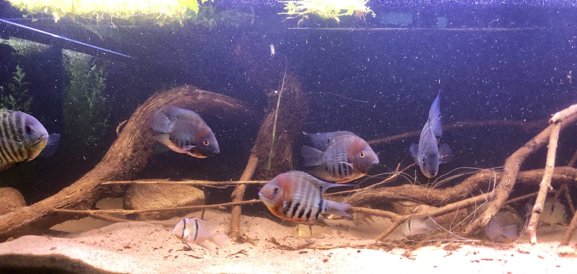 Tyvärr dog två av de sju jag lyckats rädda. Så nu är det fem kvar och de mår fint. Lite skygga men det är klart med tanke på att de levt hela sitt liv bakom bakgrunden. De är över två centimeter så nu simmar de med de grönfläckiga pansarmalarna här nere. Även kerrytetra ynglen får simma med kardinaltetrorna nu och det funkar bra.. men de kommer bli jobbigt att flytta dem sedan.....Kommentar