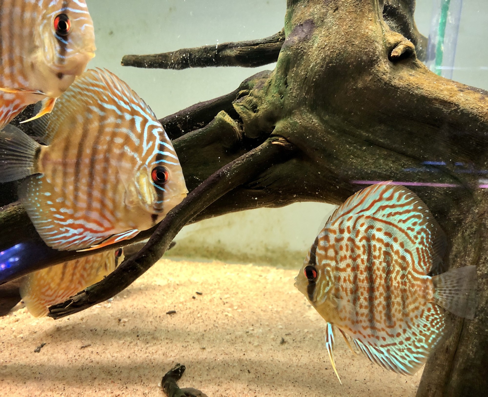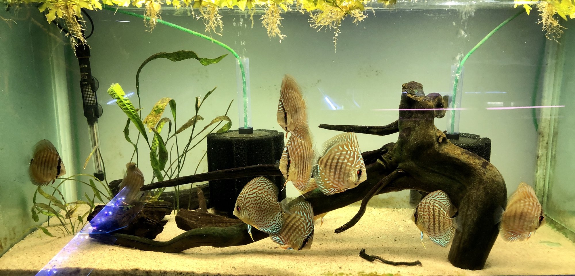 Jag skall ju inte grotta ner mig i värden utan bara köra på. Smådiskusarna är underbara. De är inne i en riktig växtperiod nu och känns helt återställda efter gälparasiten. Igår var det lite mörka men då hade jag glömt att sätta i värmaren efter förrgårs vattenbyte och temperaturen hade gått ner till 26 grader. Nu är vi uppe på 29 egen och då trivs de som fiskar i vattnet......