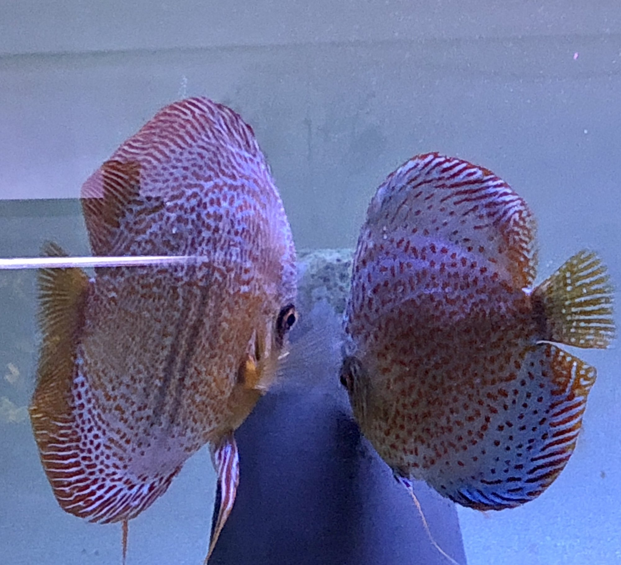 Kaffet kallnade här, jag blev liksom lite uppspelt när pH visade under åtta, har nu kört dropptest både i karet och i vattenkranen, det ligger på 7,2 precis där det brukade ligga..... förra veckan låg det på nästan 8,4. Så även om jag egentligen inte tänkt det blir det nu stora vattenbyten hos alla diskuskar. Det gäller ju att passa på, kanske kommer det stanna på 7,2 kanske är det snart tillbaka på 8,4....