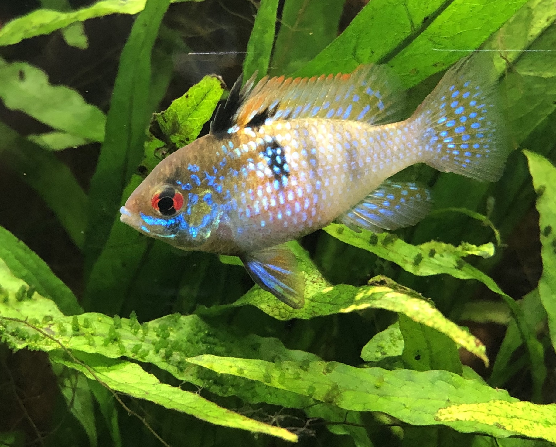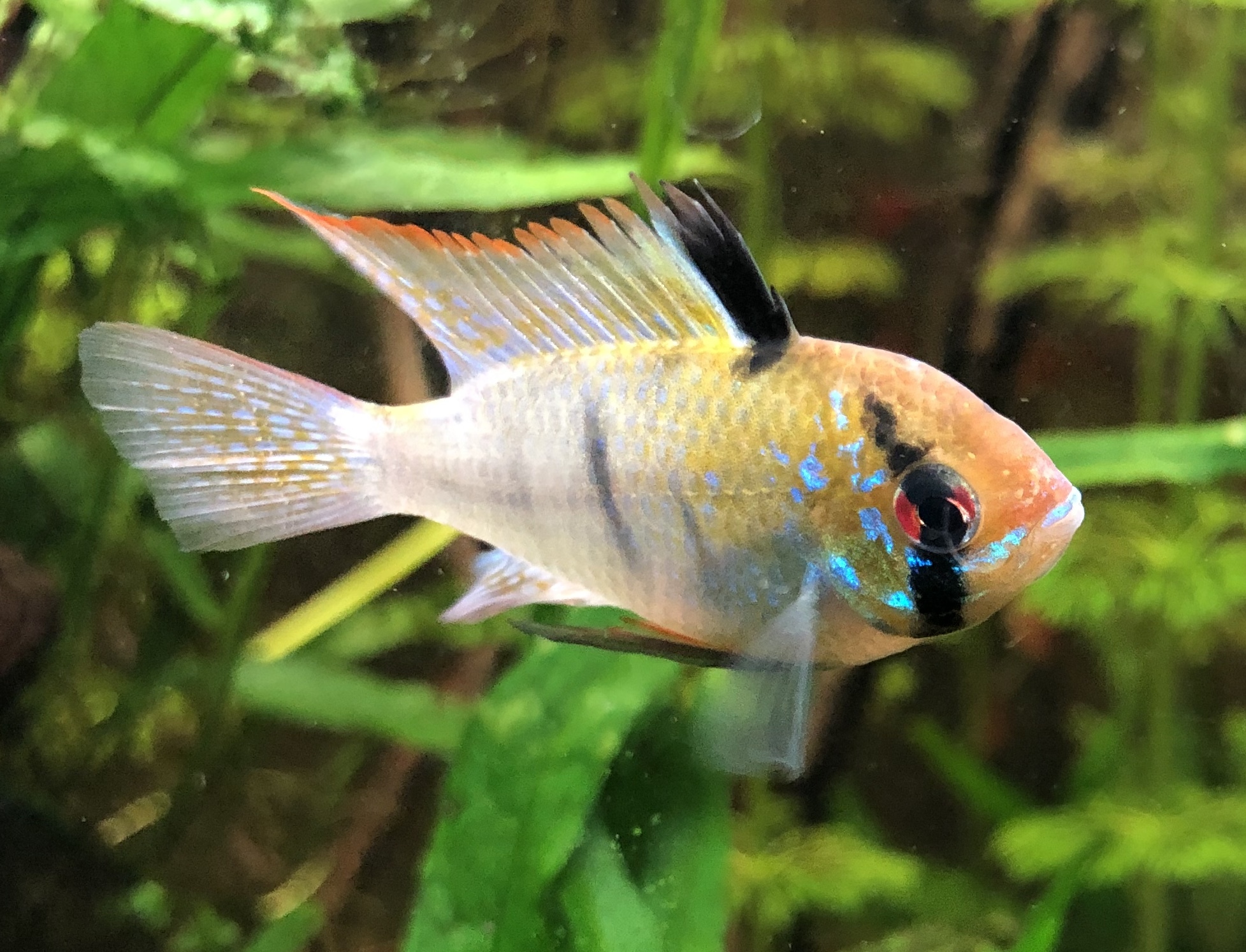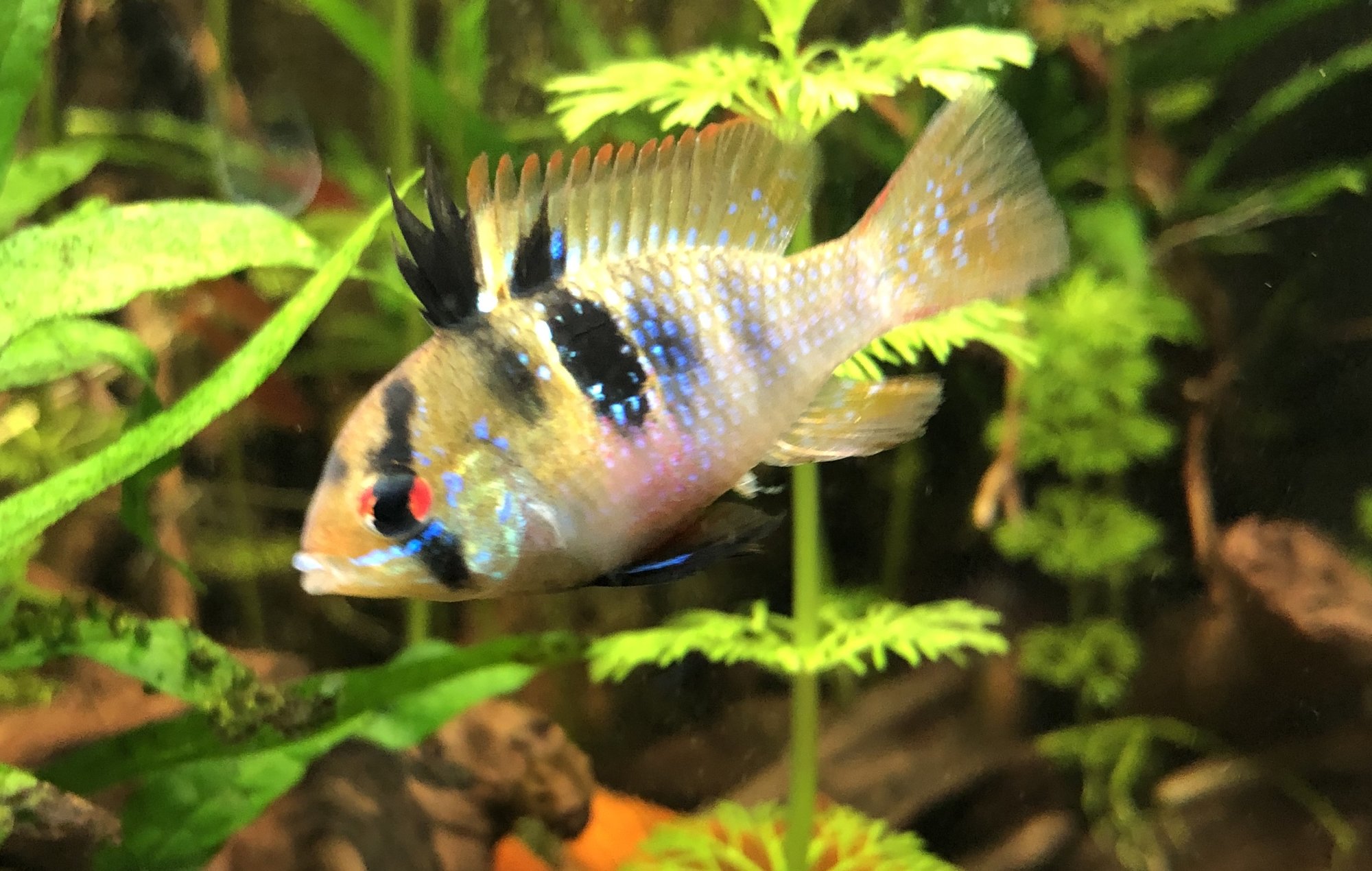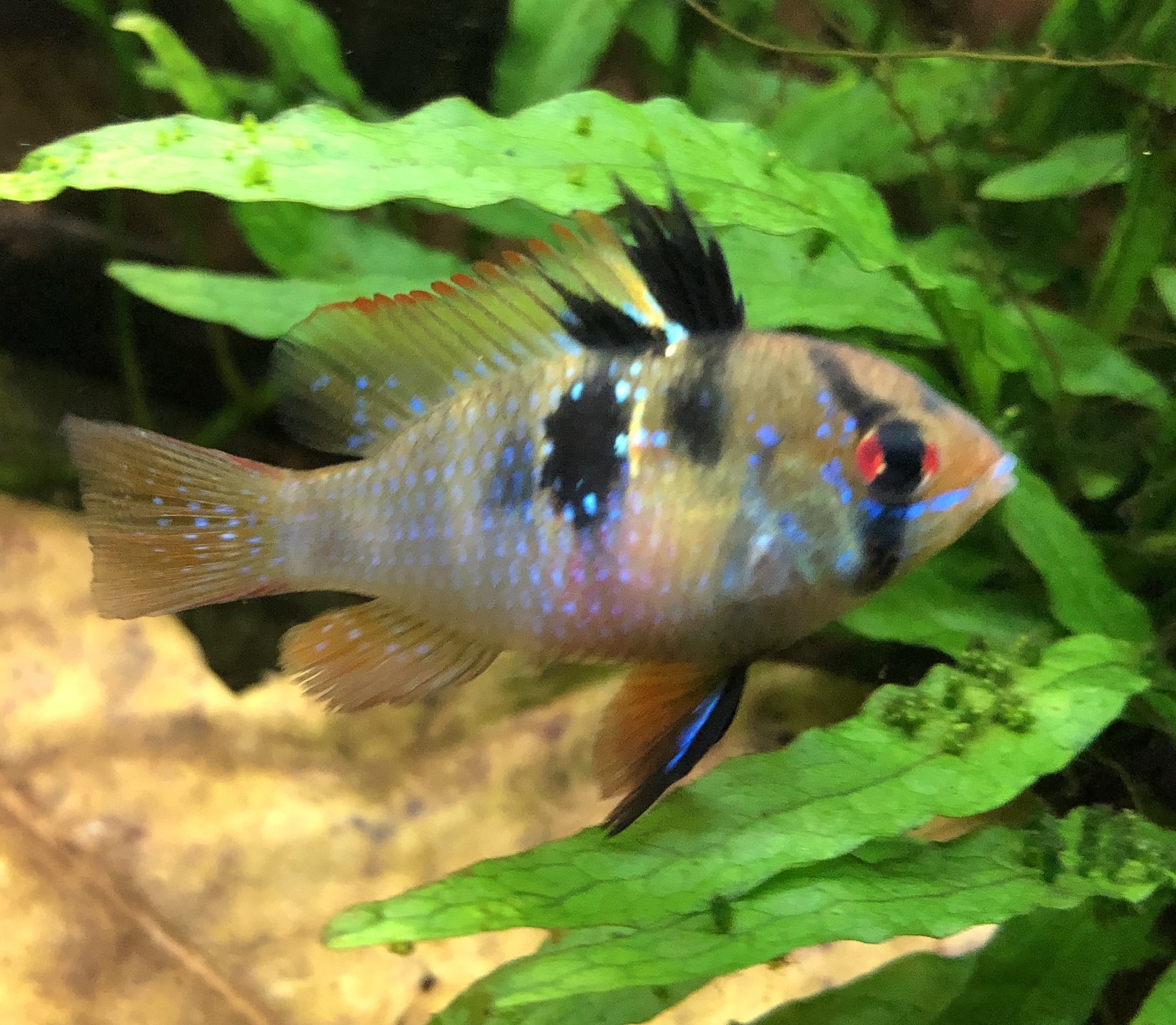 Ja, det var ju min fina hane som dog och lämnade honan ensam kvar. De nya små verkar friska och pigga men är rätt ljusa och mer ”metallic”-färgade än de gamla. Jag gillar inte riktigt när det blir för mycket metallic. En av honorna har potential att bli fin dock, hon har färger som liknar min gamla hona. Hoppas de andra tre färgar ut med tiden också.