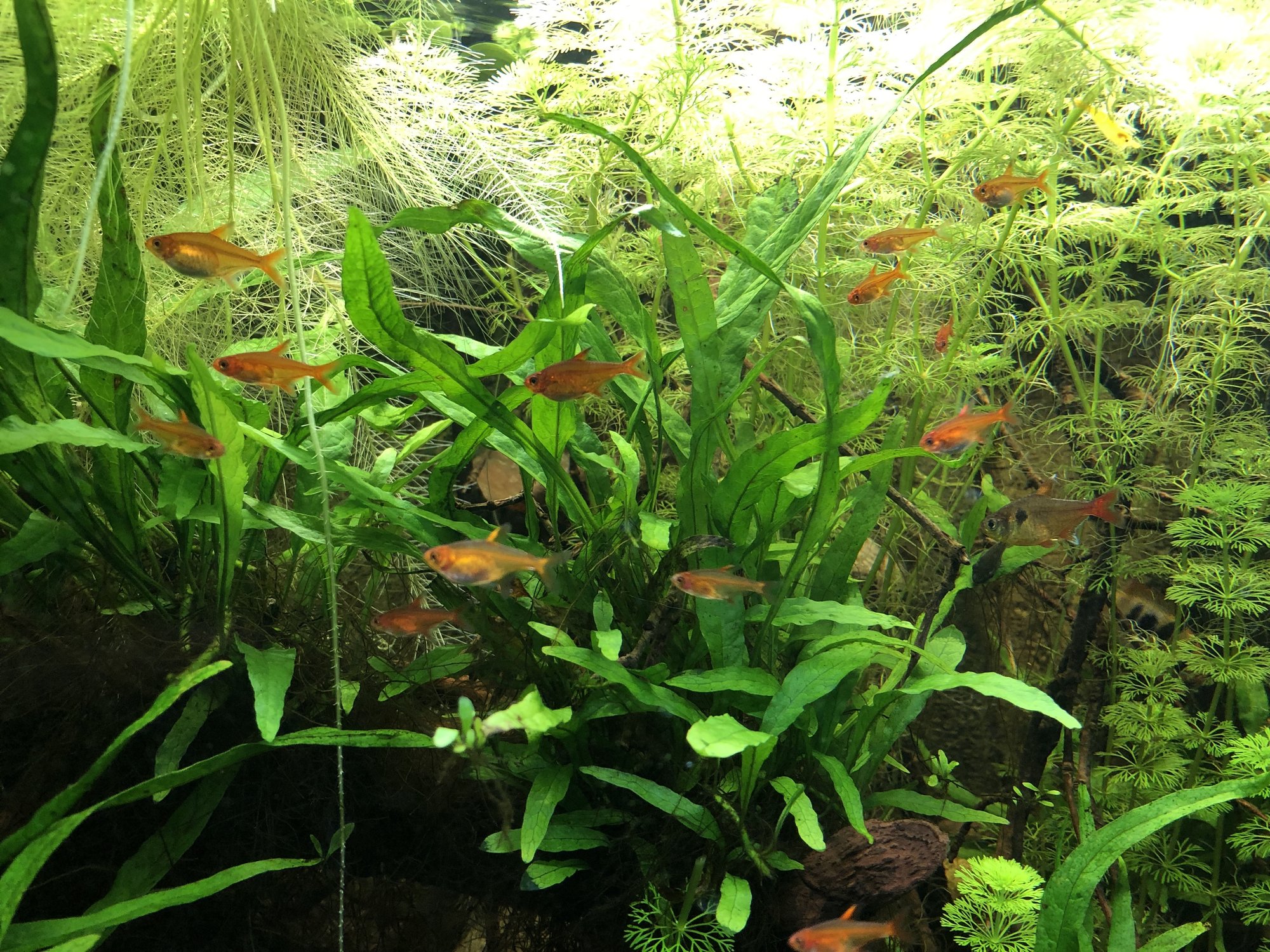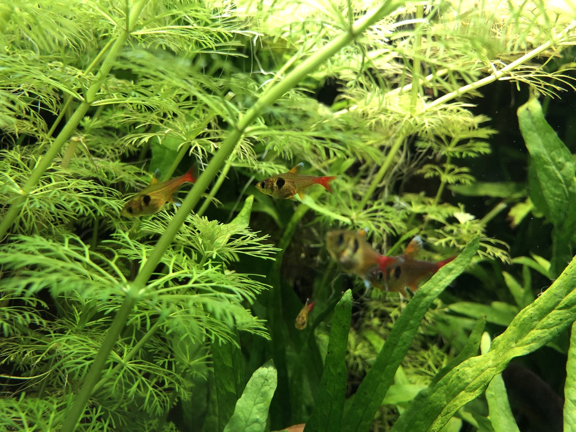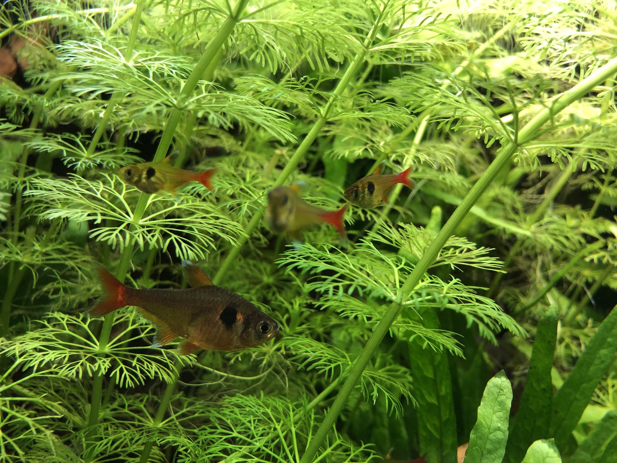 Fjärilarna är mina absoluta favoriter i mellankaret. Pigga, kaxiga, vackra och intressanta. Jag har haft dem i drygt ett år och uppfattar dem som väldigt robusta. De kommer mer till sin rätt i 240-karet än i 120-baljan, även om det funkade bra i det lilla karet också med tät inredning.