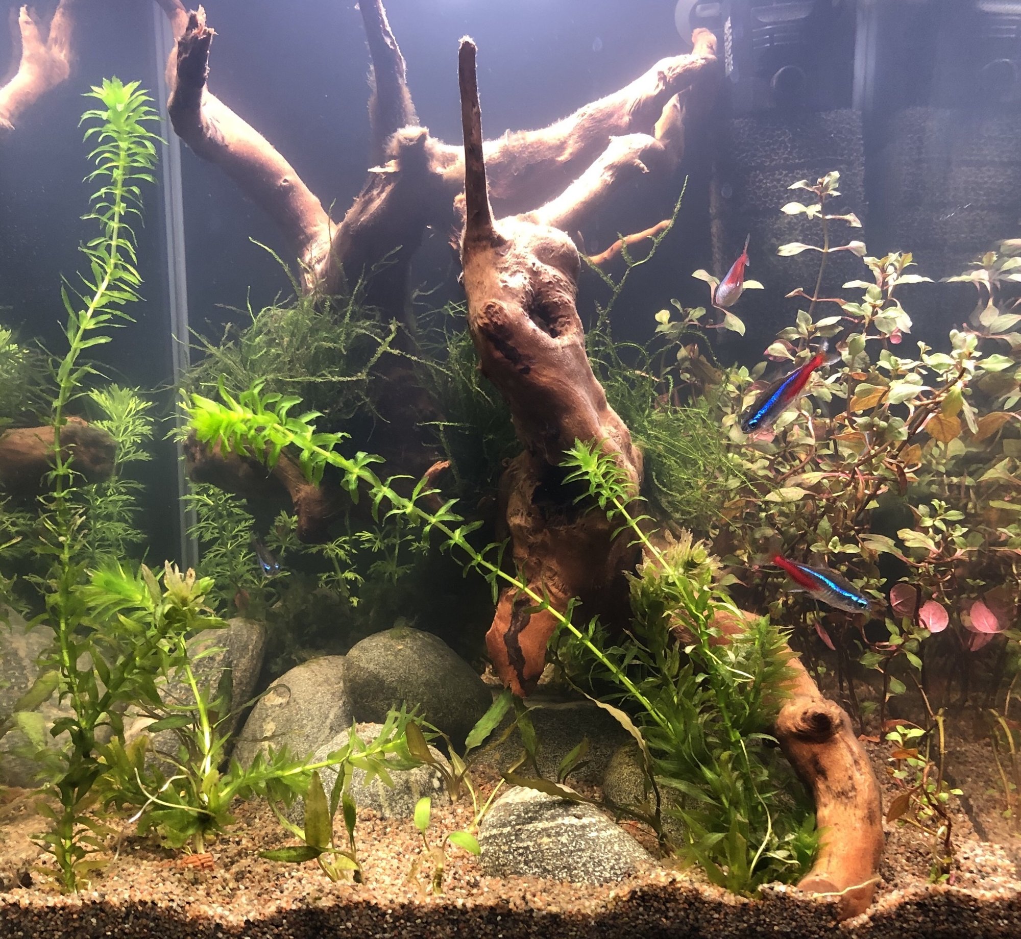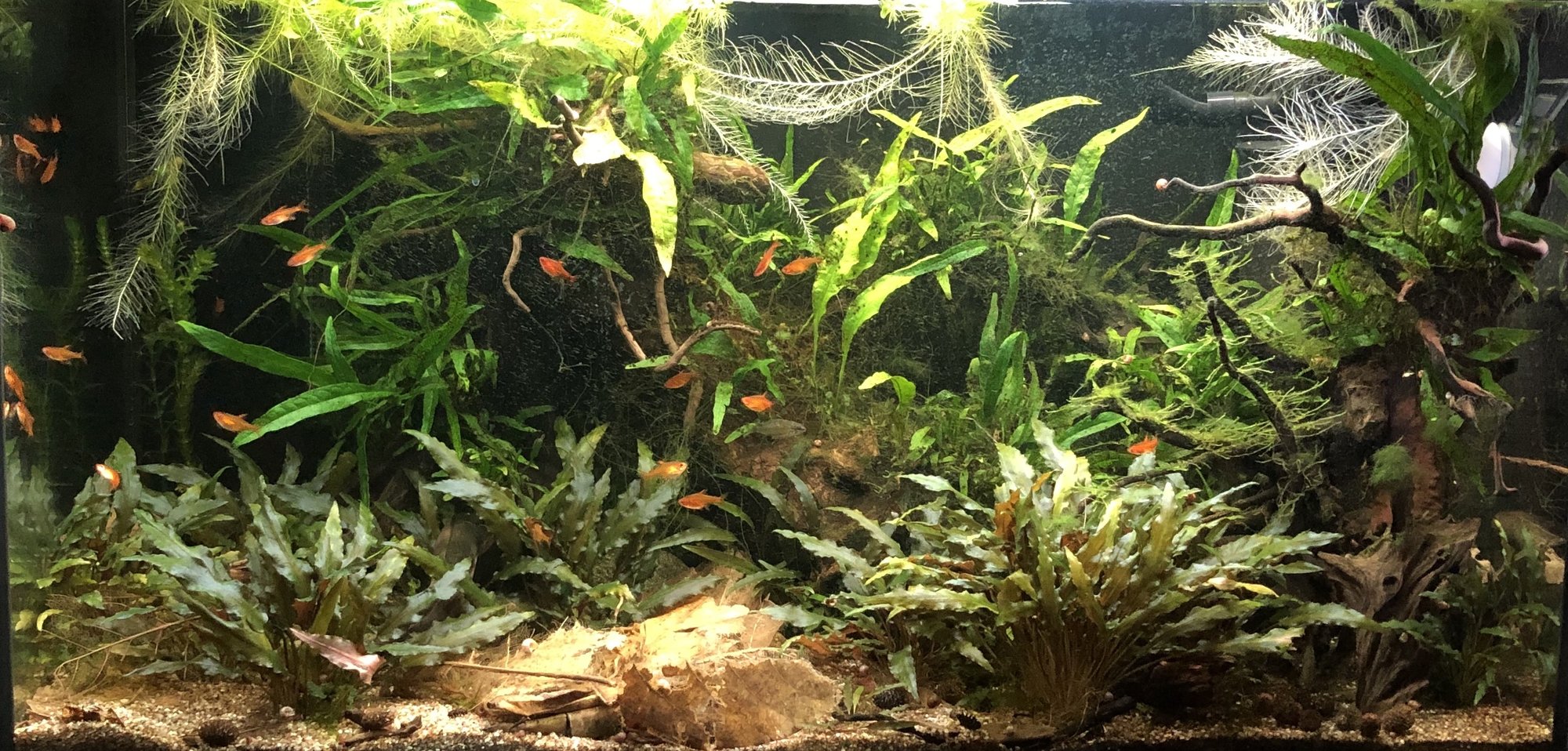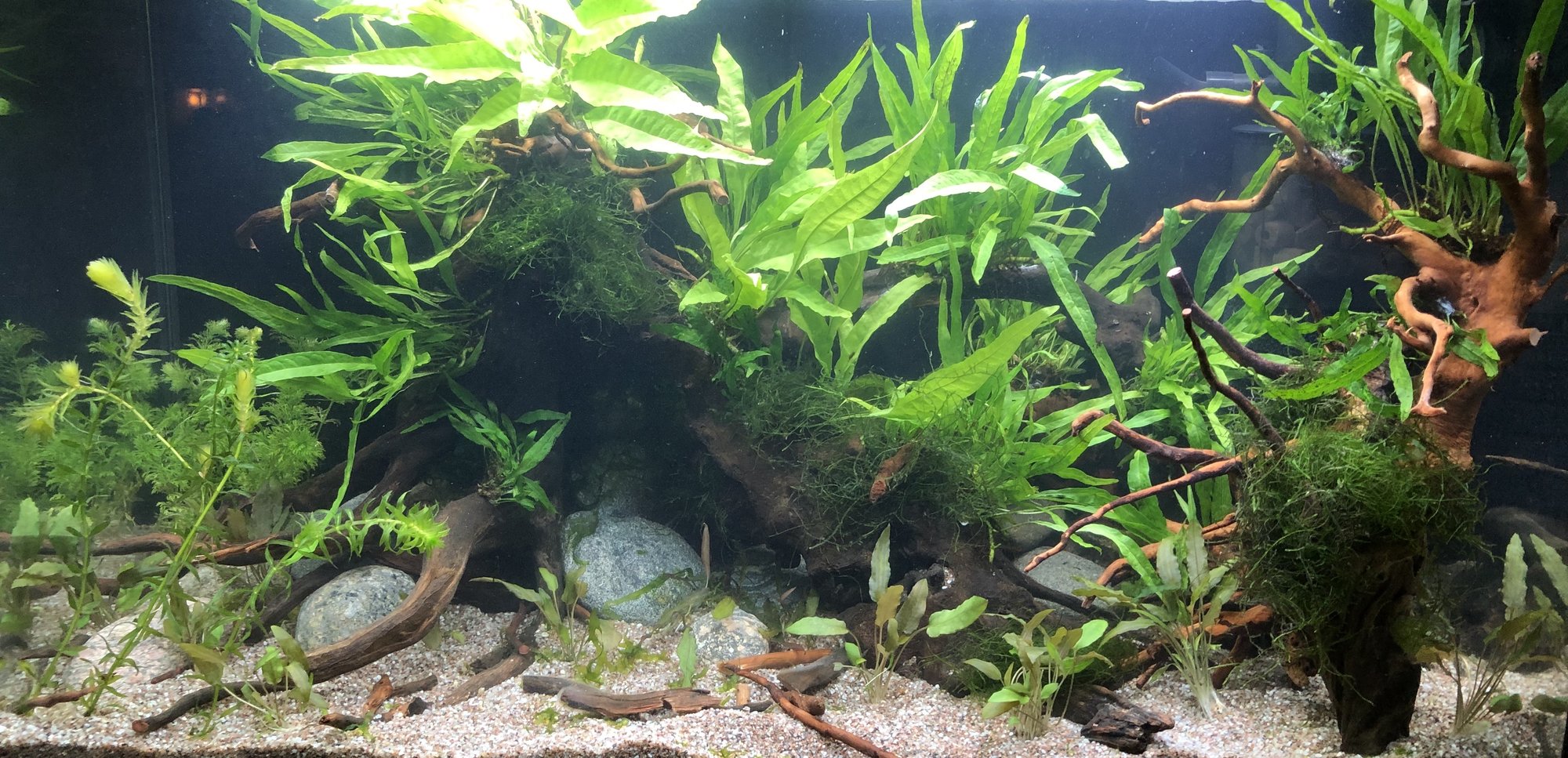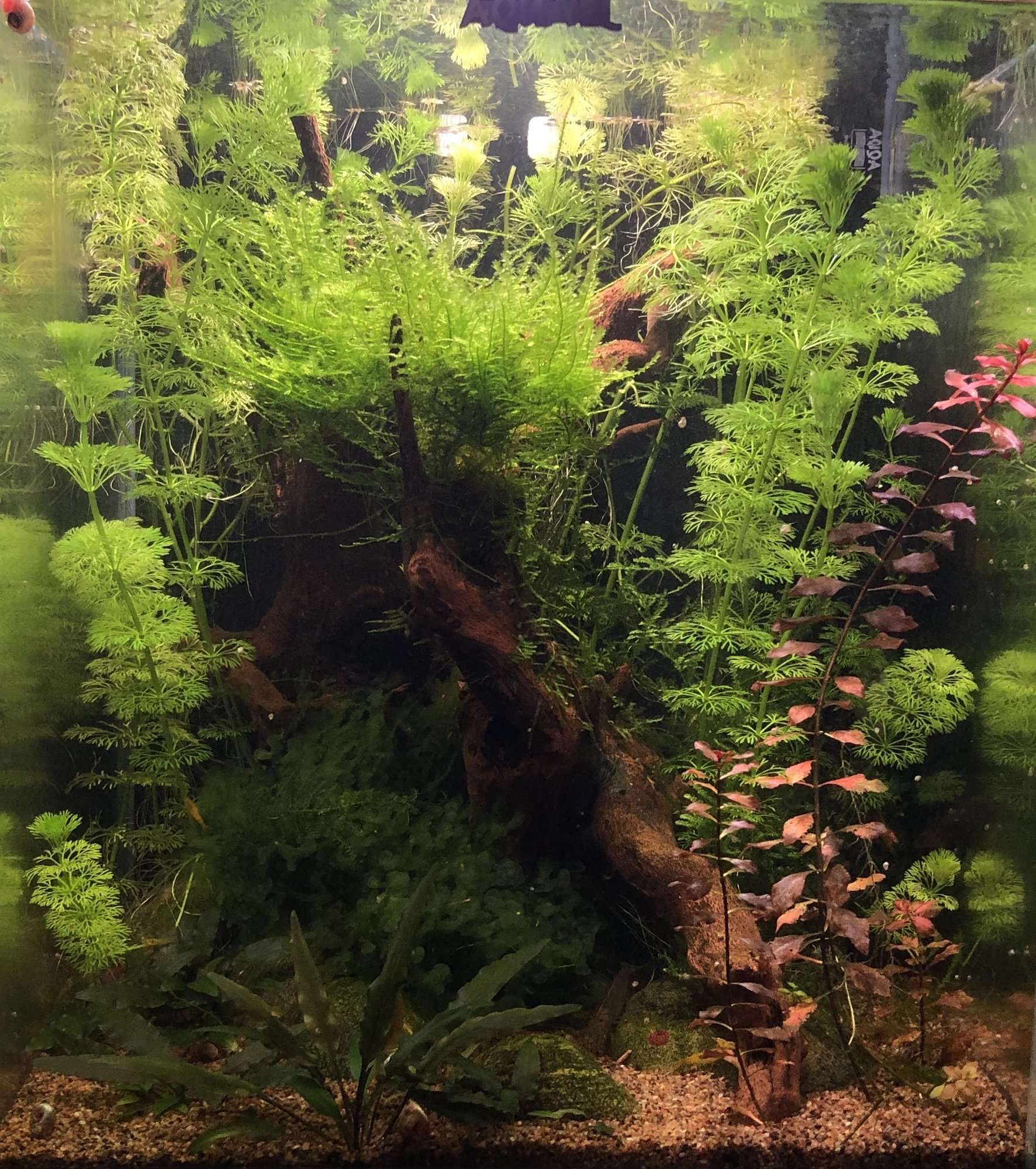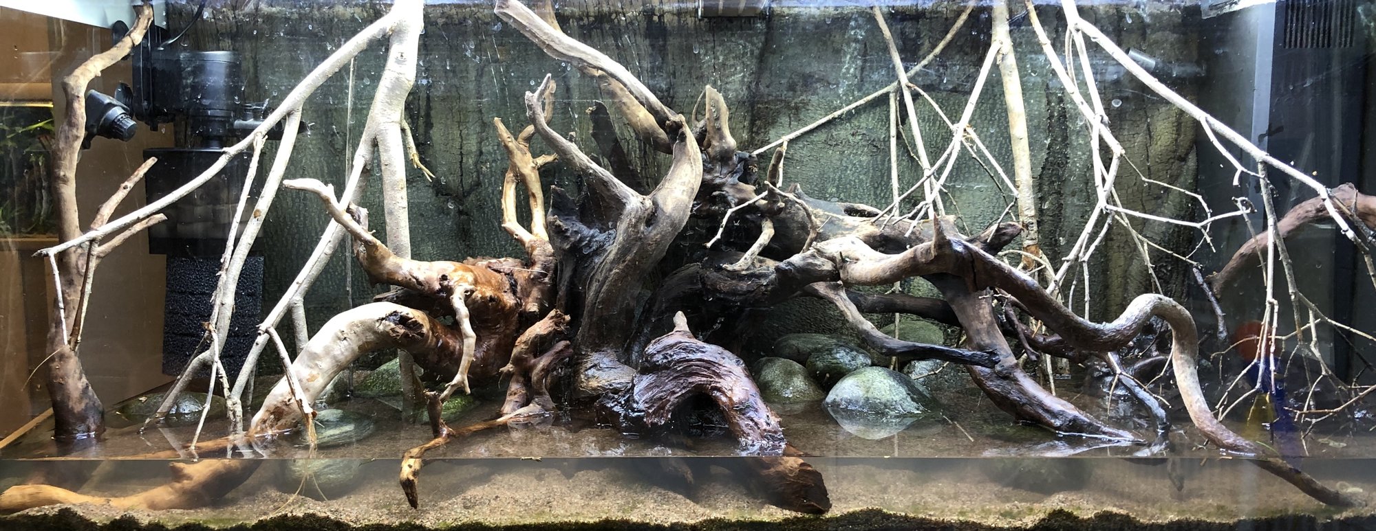 Nu har ett par fjärilar rom. Hanen är den som är snyggast och som dominerar över den andre. Vem honan är vet jag inte för jag har bara sett hanen vakta än så länge. Rommen ligger på en rot långt inne i ”växtväggen” så de har verkligen valt en skyddad plats. Skoj!Kommentar