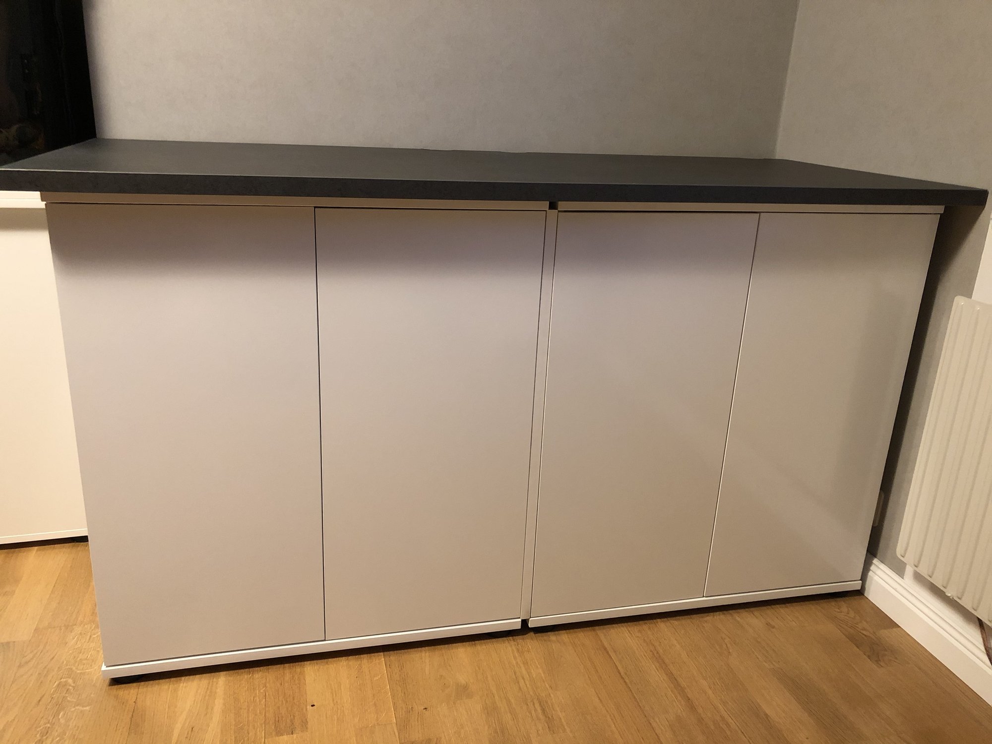 Idag har några saker skett som för projektet framåt! Jag har beställt karen; två helglas med måtten 70x55x55. Min man har byggt klart bänken. Vi gjorde det lätt för oss och utgick från två vita Juwel SBX Lido 200 bänkar. Dessa har sedan skruvats fast i varandra med en skiva emellan så de står stadigt. På dem har en laminerad bänkskiva skruvats fast. Maken gjorde snygga urtag i bänkskivan baktill så man kan ta i och ur sladdar/kontakter utan krångel. Vi har flyttat mellankaret på sin bänk till en tillfällig plats och ska ställa den nya bänken där mellankaret tidigare stod. Jag ska beställa ljusramp, värmare och pump. Sedan är det bara att väntaKommentar