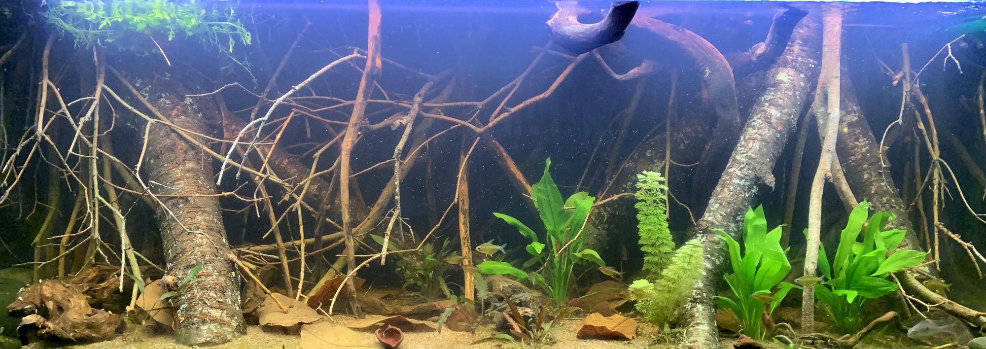 Nando! Jag har också strilröret vid vattenytan på högra kortsidan. Lite beroende på vad man har för filter (själv kör jag ett fenomenalt EHEIM-2250, en av de klassiska ”tunnorna”) så blir det fint vattenflöde, och syresättning, i karet.