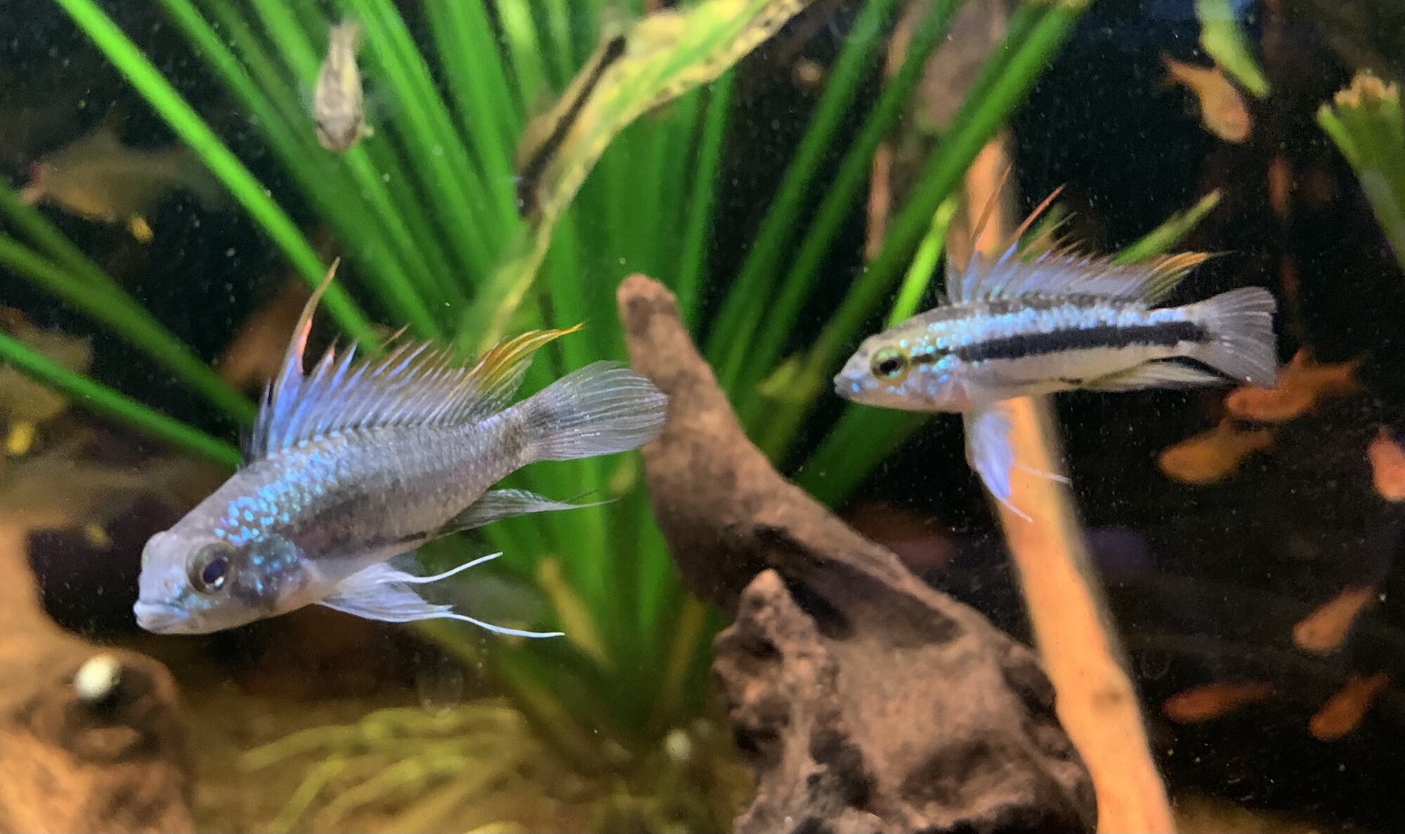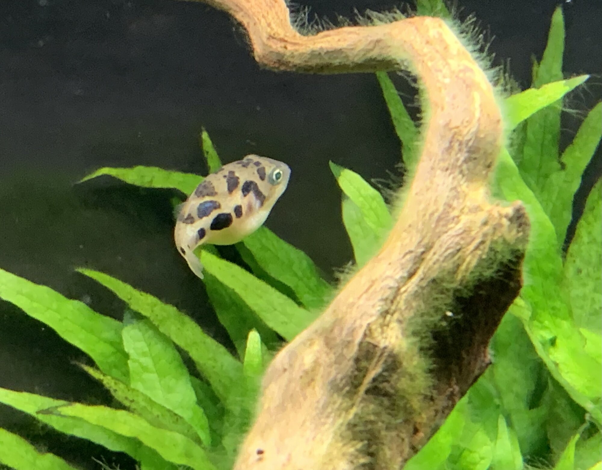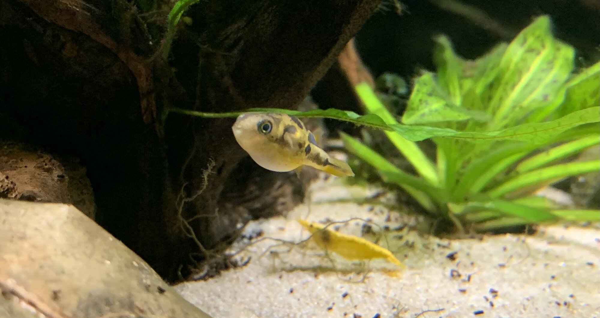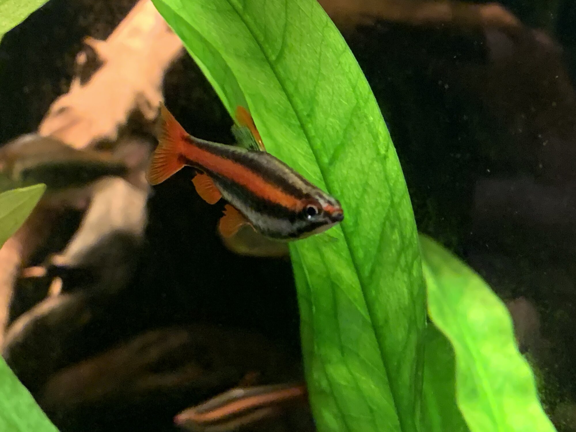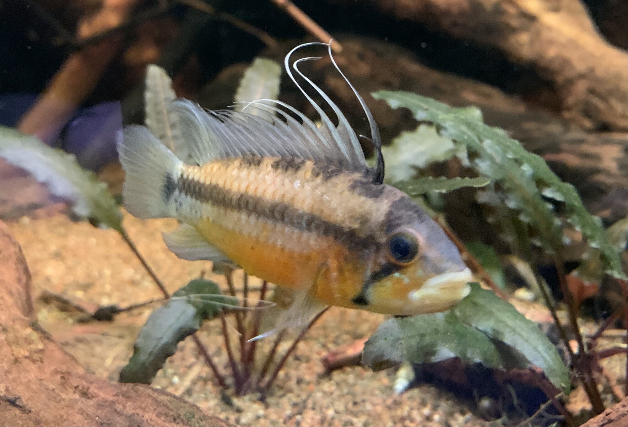 Kulkaret är på 54L och där går sex dvärgkulfiskar tillsammans med amanoräkor och gula räkor. Jag har finkornig ljus sand, rötter/grenar/pinnar, sötvattentång, en del andra växter och några stenar. Tanken med inredningen var att skapa något för dem att titta på och undersöka samtidigt som det inte skulle vara för mycket öppna ytor. De är väldigt nyfikna och ”med” i allt som händer. Samtidigt behöver de plats att dra sig undan från varandra för det kan bli lite ruffigt mellan hanarna emellanåt. Jag matar med olika typer av levandefoder (vita mygg, blackworms och tubifex), snäckor (har en snäckodling i en separat bunke) samt frysta vita mygg. Det är en väldigt rolig och söt fisk!Kommentar