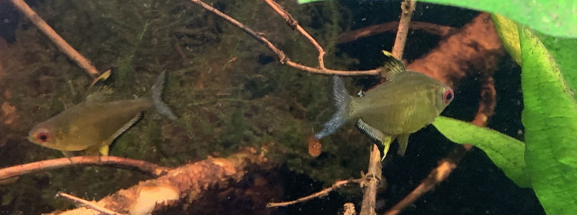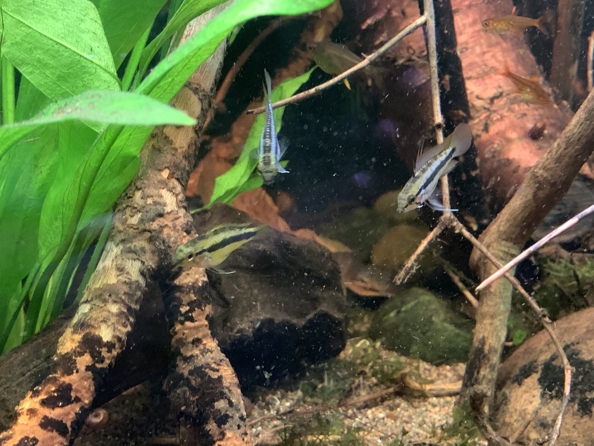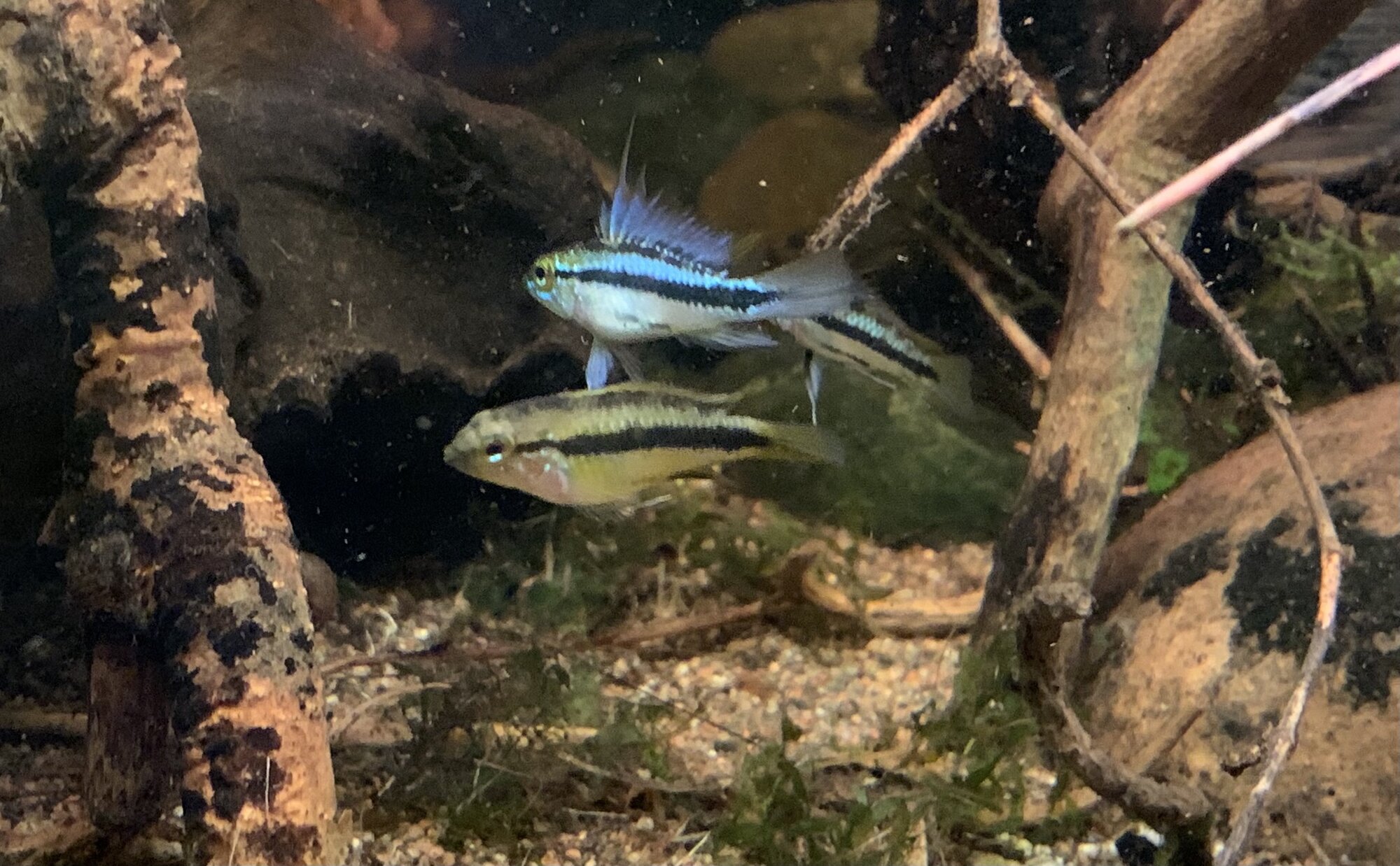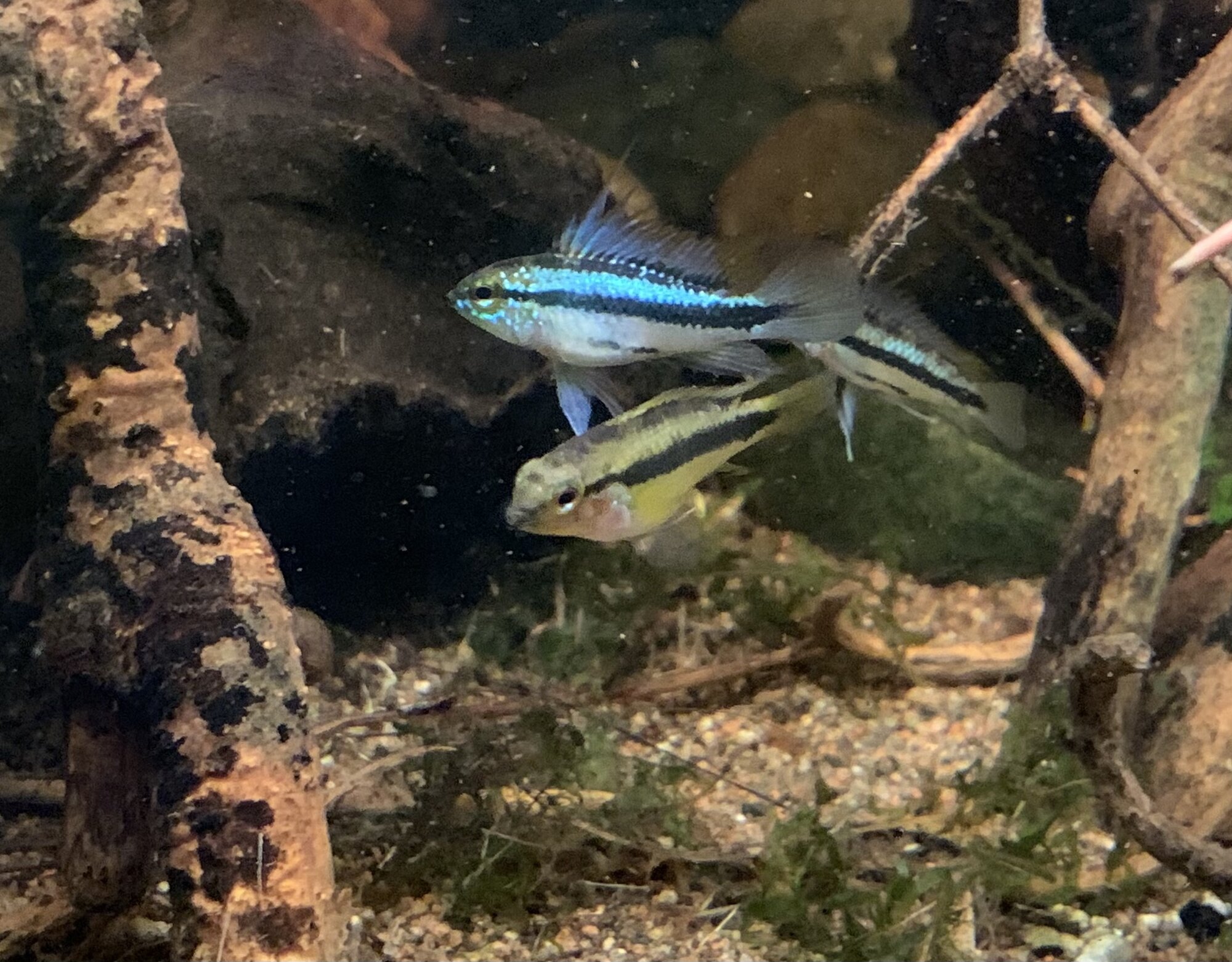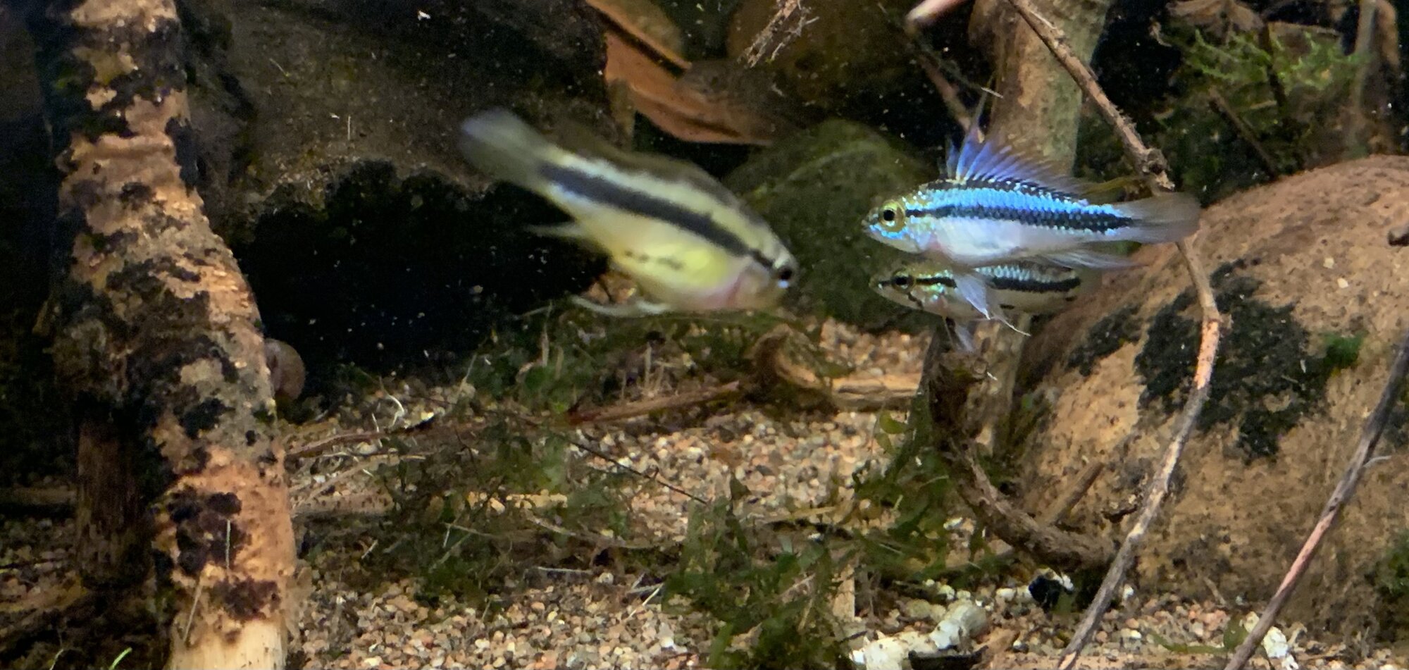 Jag väntar för tillfället ut de sista tre Apistogramma paulmuelleri-ynglen (nu vuxna) som fortfarande går kvar i karet. Föräldrarna är sedan länge borta och de tre hanar som är kvar får göra sitt, sedan blir det lite nytt.