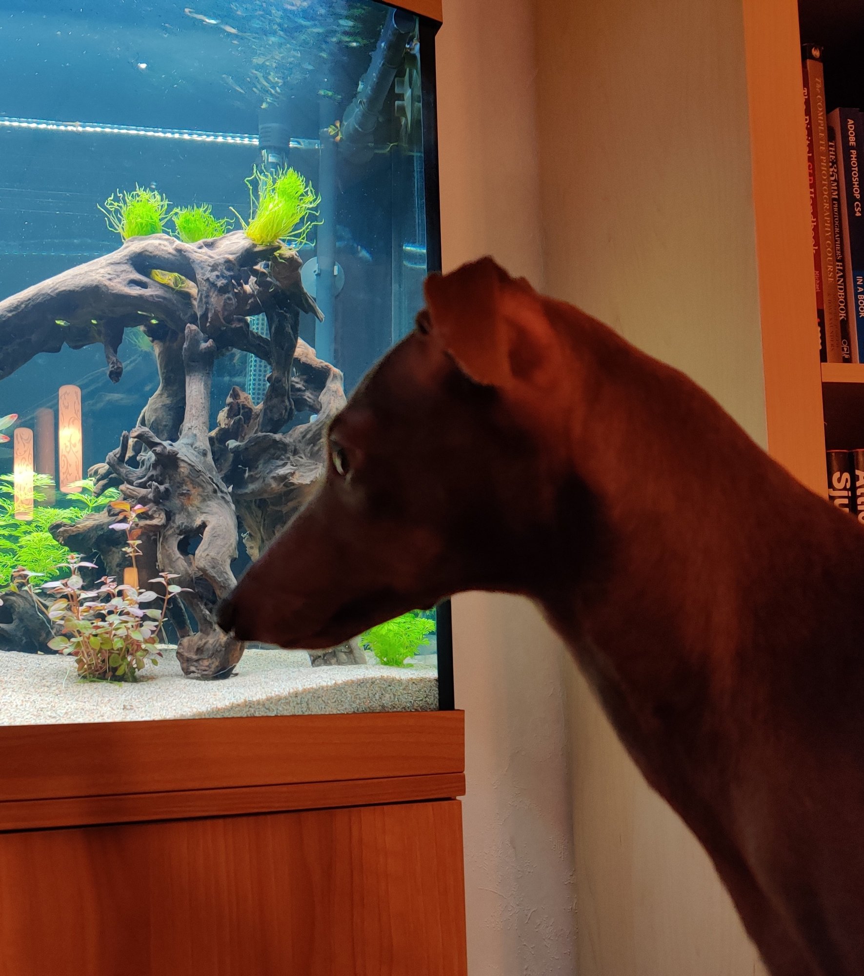Du har ju inte mycket eller stora växter just nu och då är det svårt att få till inredningen så där riktigt bra. En bra utfyllnadsväxt som jag älskar och i mina två akvarier är jätte anubias, den är fantastisk, bara lägga den mot botten utan att förankra den och vips