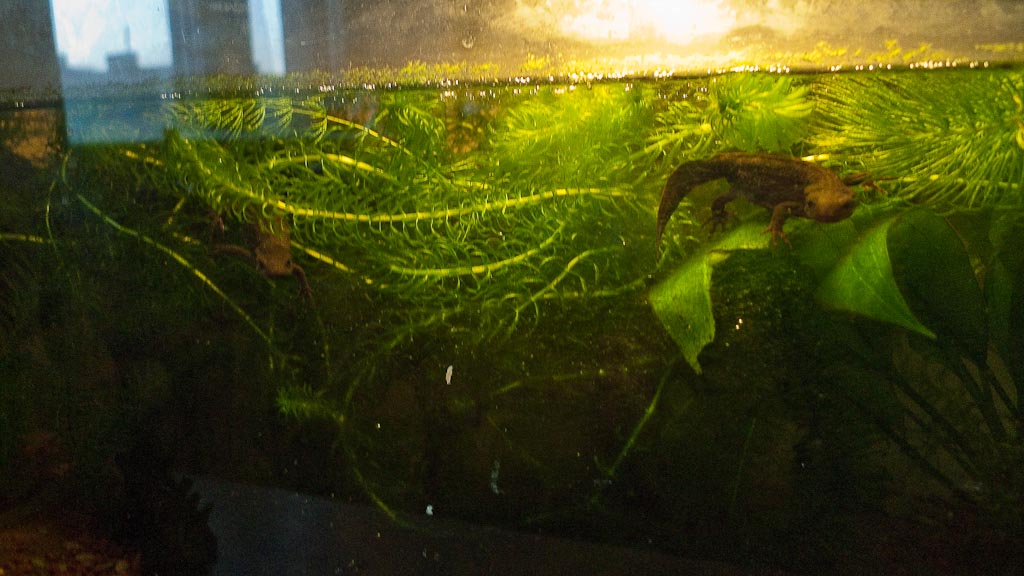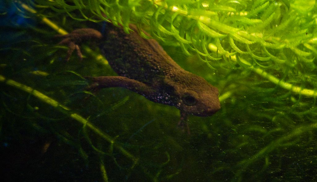 Jag övervintrade dem inte på något speciellt sätt. Akvariet står hyfsat svalt, utan doppvärmare och med svag belysning. Som kallast på vintern kanske det blev 18 grader, på sommaren upp till 30. ungefär som i deras hemland. Varför vill inte din fru ha salamandrar? De är små, söta, tysta, lättskötta, kan bli handtama; mer idealiska husdjur är svåra att hitta!