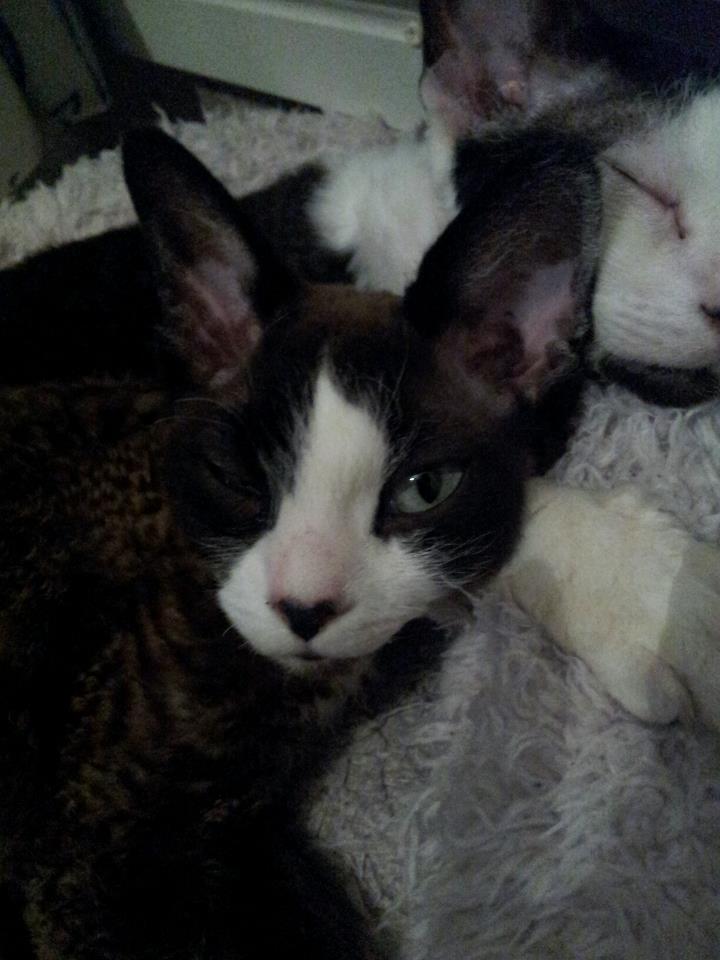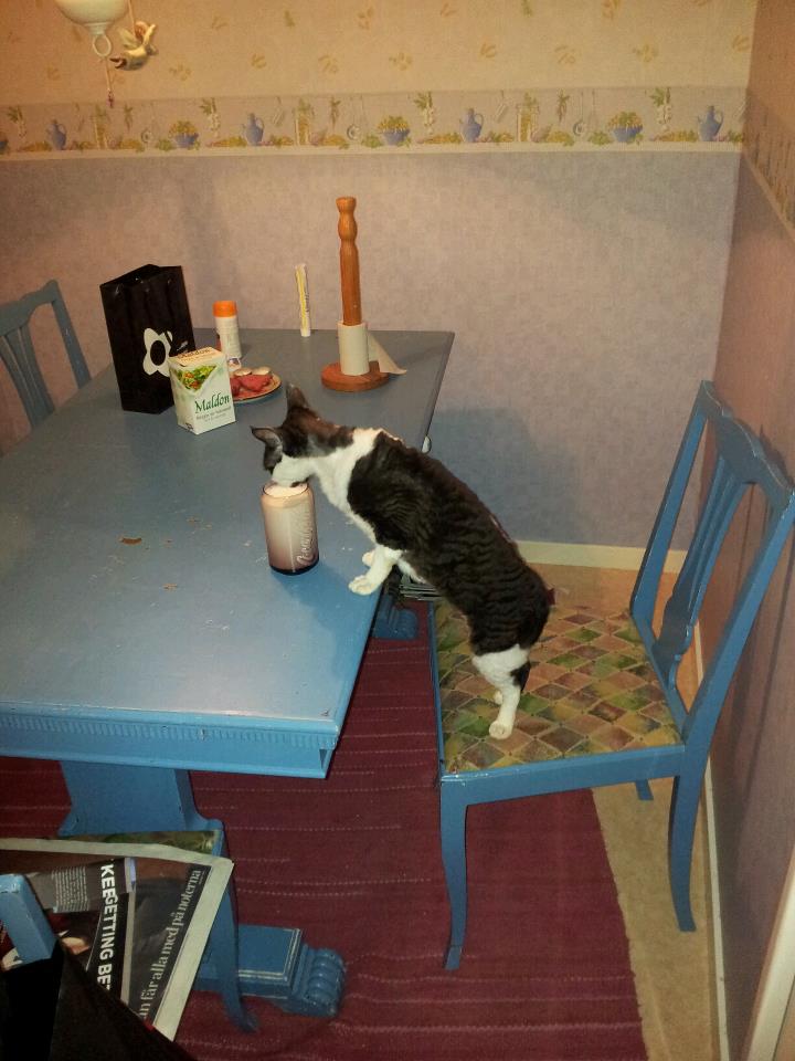 Semla är en svart korthårig huskatt (har burma o rex i sig vet dock ej om det är cornish eller devon rex) riktigt silkesmjuk o glänsande päls. Hon är 1 år o en vild primadonna som inte äter vadsomhelst (råa kycklingvingar o fläsk kött ska det va nötkött e ju urk).