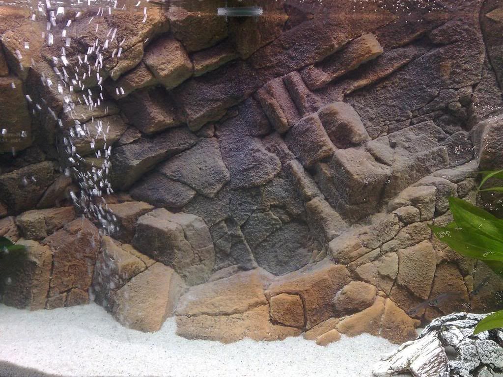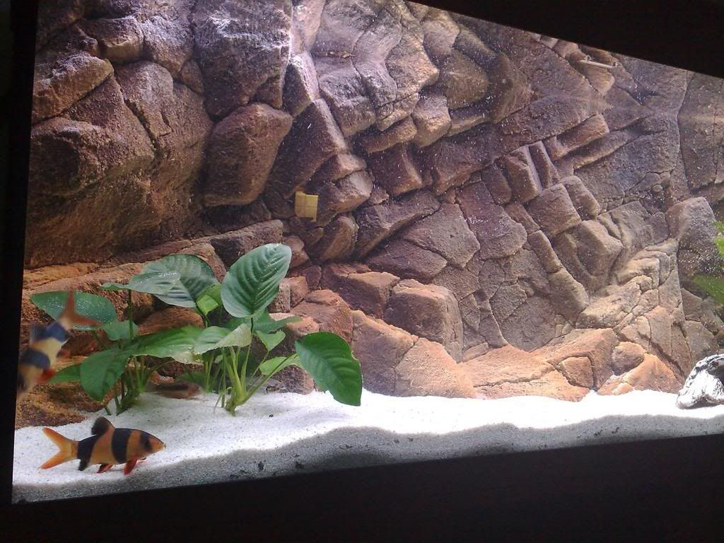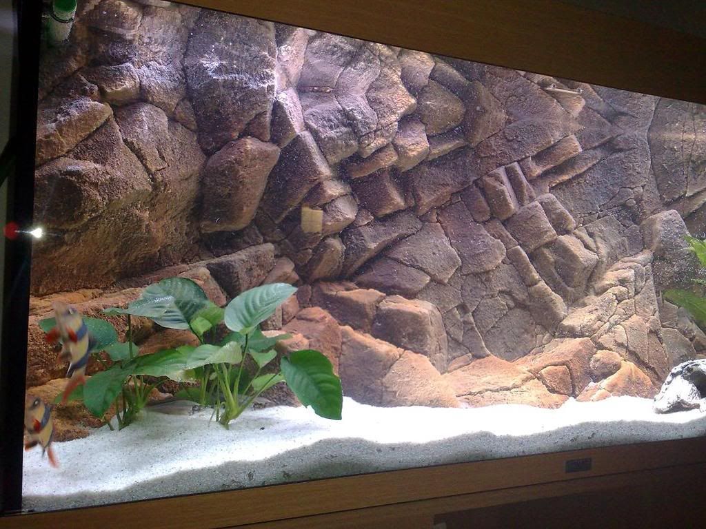 Gaffel skrev:Kul spegeleffekt uppe på ytan, din balja blev genast 90cm hög, ta gärna lite bilder på hela akvariet, plus lite bilder på hur baksidan på bakgrunden ser ut(typ uppifrån), om du kör filtermassa även där bakom osv(har du bara sub, o mech plus grov matta i pumpen? tänk på att den vita fina kan du vänta med så du inte fyller den med stenmjöl), vad har du för mått på karet?