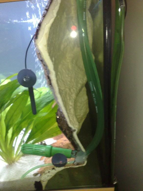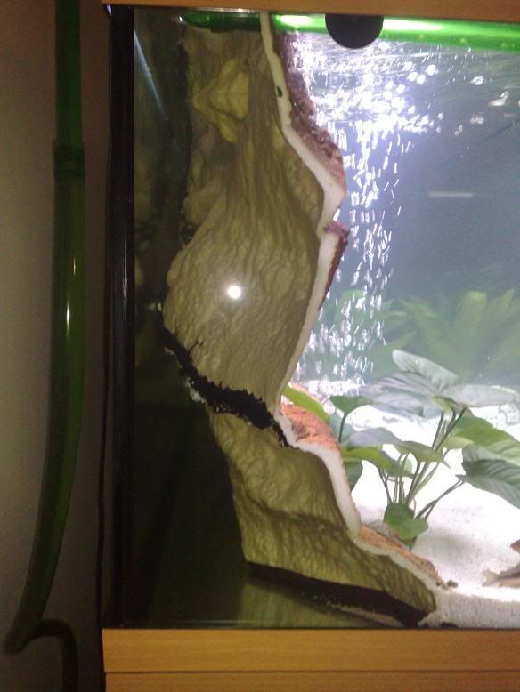 bry er inte om den svarta silikonsträngen där bak hehe, skulle bygga skiljeväggar med jag tog en annan lösning, ska snart gömma den biten av akvariet med svart film.