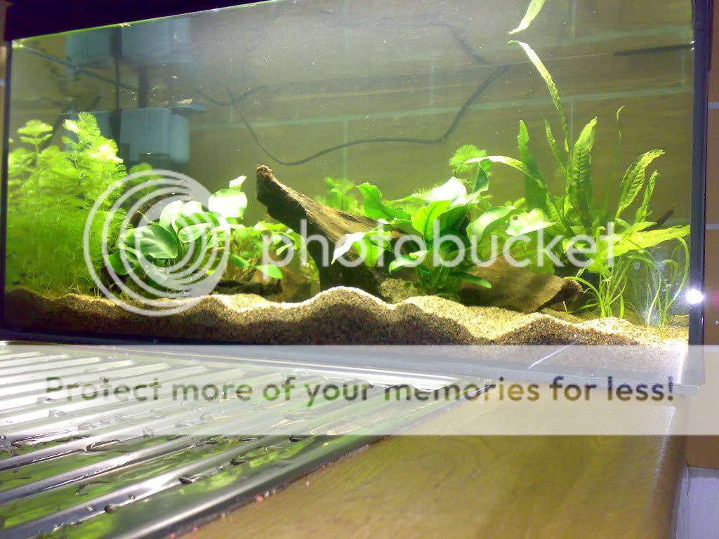 När akvariet var släckt samt när jag rotade i det fanns det inte så mycket plats att sätta växterna på men det känndes som ett fint akvarie fastän det var mycket inredning. När jag sen sätter dit rampen och tänder tycker jag knappt det hänt något i akvariumet, men någon väst skymmer säkert.