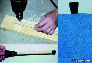 åheim skrev:Ett enkelt men effektivt filter kan man göra genom att man använder en 10x10x45 cm del av en filtermatta (för ett 375-500 liters akvarium) och något mindre för små akvarier samt ett pumphuvud (ju starkare desto bättre, förutsatt att fiskarna i akvariet gillar cirkulation på vattnet). Man borrar (eller sticker med en kniv) sedan ner i svampen från ena gavelns centrum ungefär 35 cm. Ner i "hålet" sticker man sedan ett plaströr (elektrikerrör) i vilket man borrat en massa små hål och tätat rörets ena ände. Med hjälp av en lämplig skarvmuff så anbringar man ett pumphuvud överst och det är bara att köra igång.