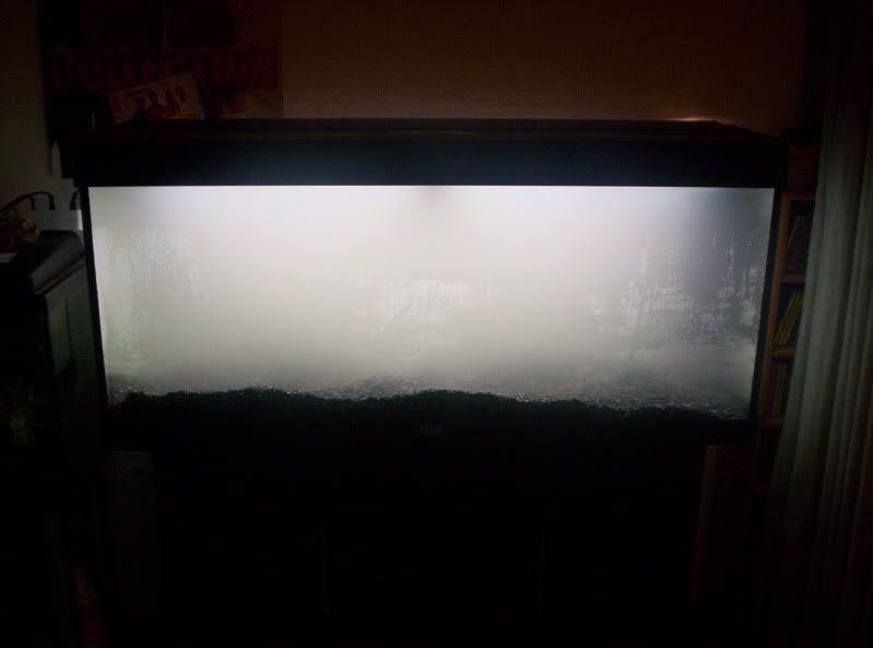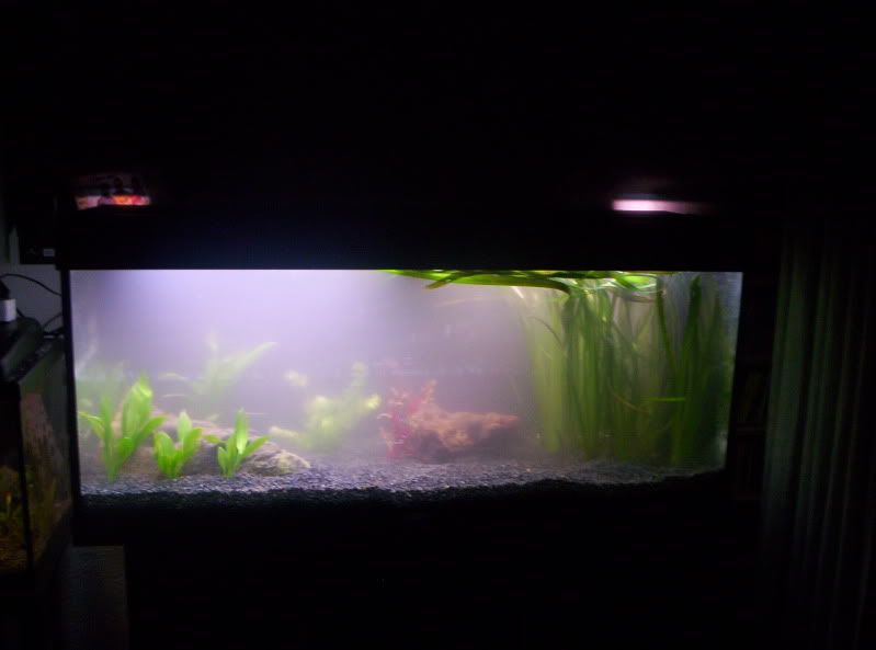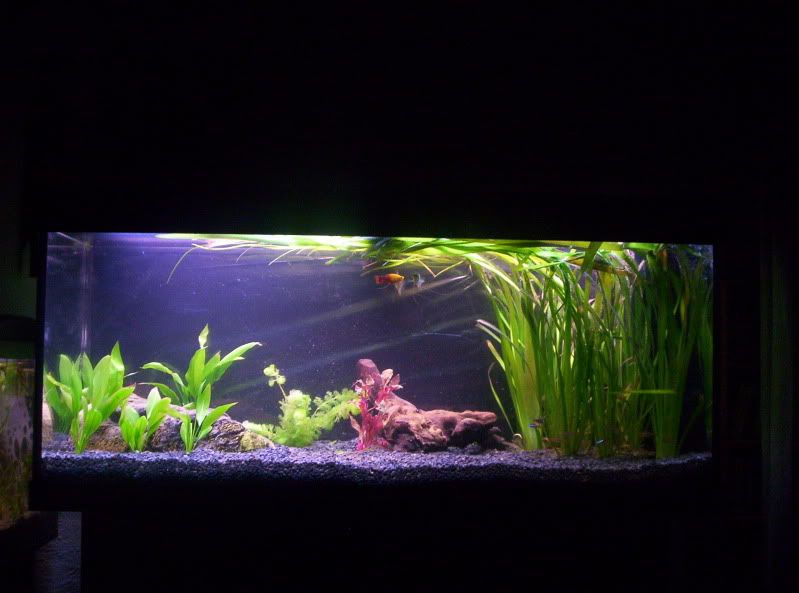 Just nu står det vattenfyllt för att kolla så det inte läcker, 40 kg svart grus är inhandlat och även en del växter + en rot. Mer inredning och växter kommer köpas in när pengar rasar in på kontot :D