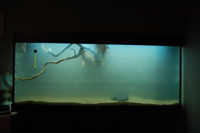 Skulle misstänka det, en säck är i minsta laget;). Grumligheten kan ta ett par dagar innan den försvinner, lite beroende på hur noa du tvättat sanden.