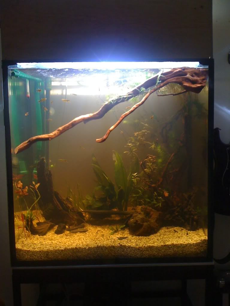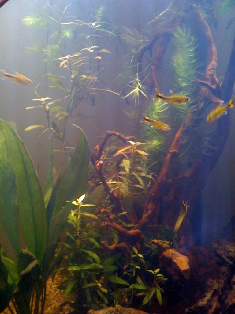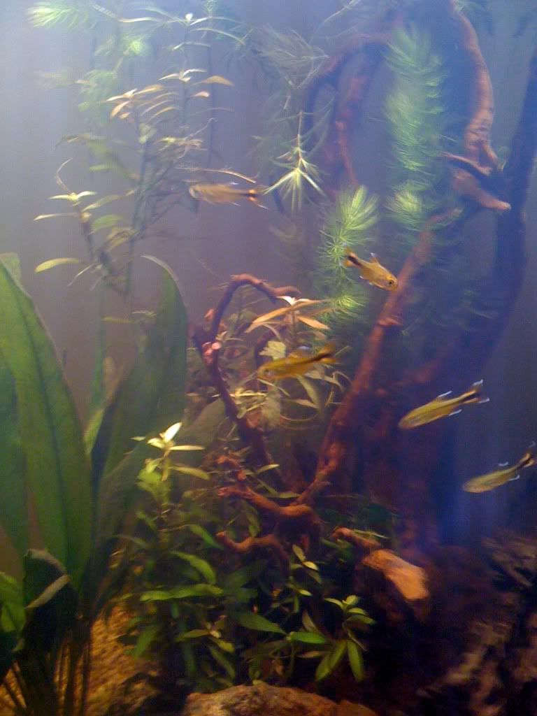 andra dagen fattade jag, att de äter upp tetrorna på natten och likförbannat ville de inte stimma... jaja, dessa tetror suger tänker jag, va ere för mening med en stimfisk som inte stimmar... såg att det var lätt o få lek på juvelciklider så varför inte, tetrorna blir kvar och juvelcikliderna blir kvar.. :P