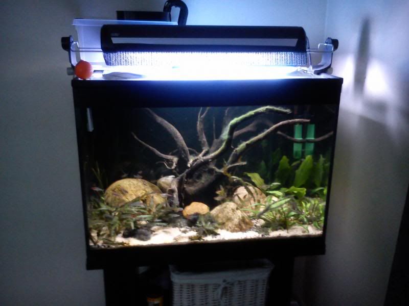 Det är nog bland den effektivaste metoden för att få in syre i det filtrerade vattnet och omdå krävs det inte så stark cirkulation i karet. Fult men inte så snyggt med ett ytterfilter heller bredvid karet, om man inte har ett skåp att ställa det i. Man kan sätta ett litet skåp ovanför karet där man ställer in droppfiltret eftersom det väger väldigt lite. Fördelen att ha det ovanpå är att man slipper borra karet och sätta i en ful överrinningskammare. Finns ju nackdelar och fördelar med alla system men jag tycker det är övervägande fördelar med den här lösningen:)Knax skrev:Fult, men funktionellt. :) Inspirerande! Jag funderar nu på hur jag skulle kunna skapa något liknande. Hur syresätter man när man har droppfilter?