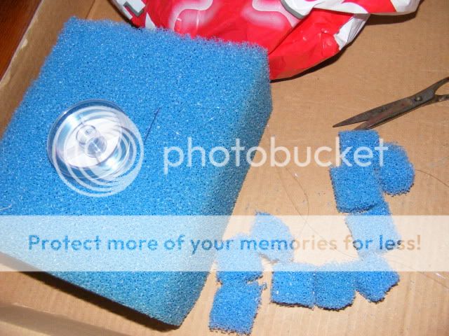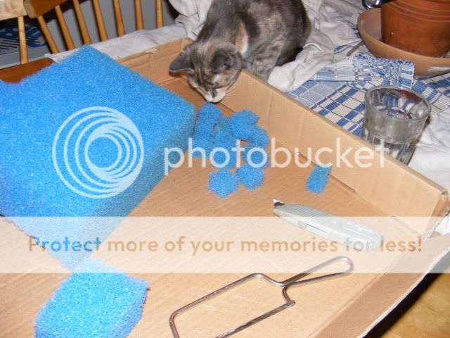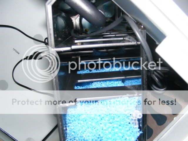 Fack 2: Här stoppar jag nedklippt grovporig filtermatta som träs på fiskelina så det går att på ett smidigt sätt få upp det vid rengöring. (snott lösningen från ett forum)