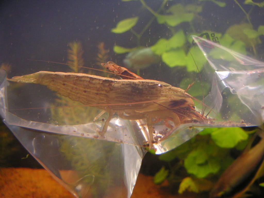 Var idag och köpte två st solfjädersräkor, en hona och en hane. Hann inte ens koppa in dem innan påsen kryllade av små små små yngel. Gjorde en snabbsökning på nätet för lite info, hittade inte mycket. Det enda var att de små ska ha bräckt vatten. Så, just nu går de i ett 10liters med nån tesked havssalt i.