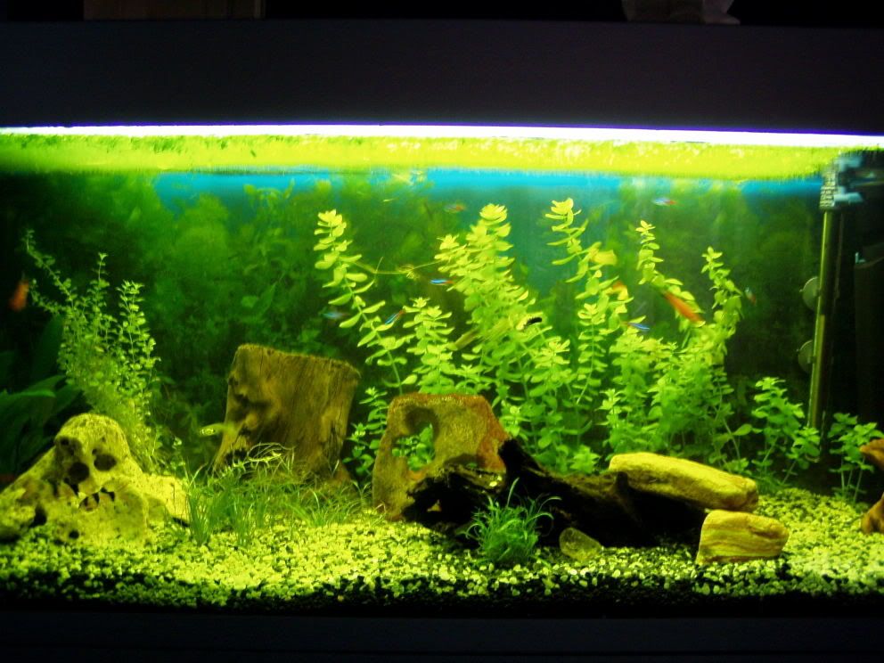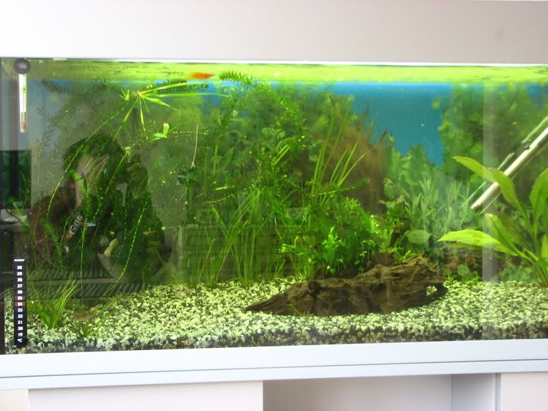 Kanske bör sätta i lite mer växter nu plus några stycken svärdbärare först och sen vänta ett par veckor, sätta i lite mer växter och några andra fiskar tex guppy.