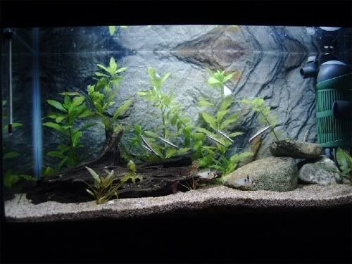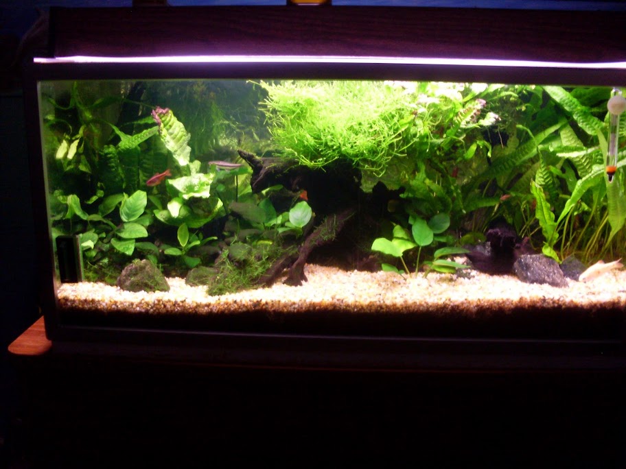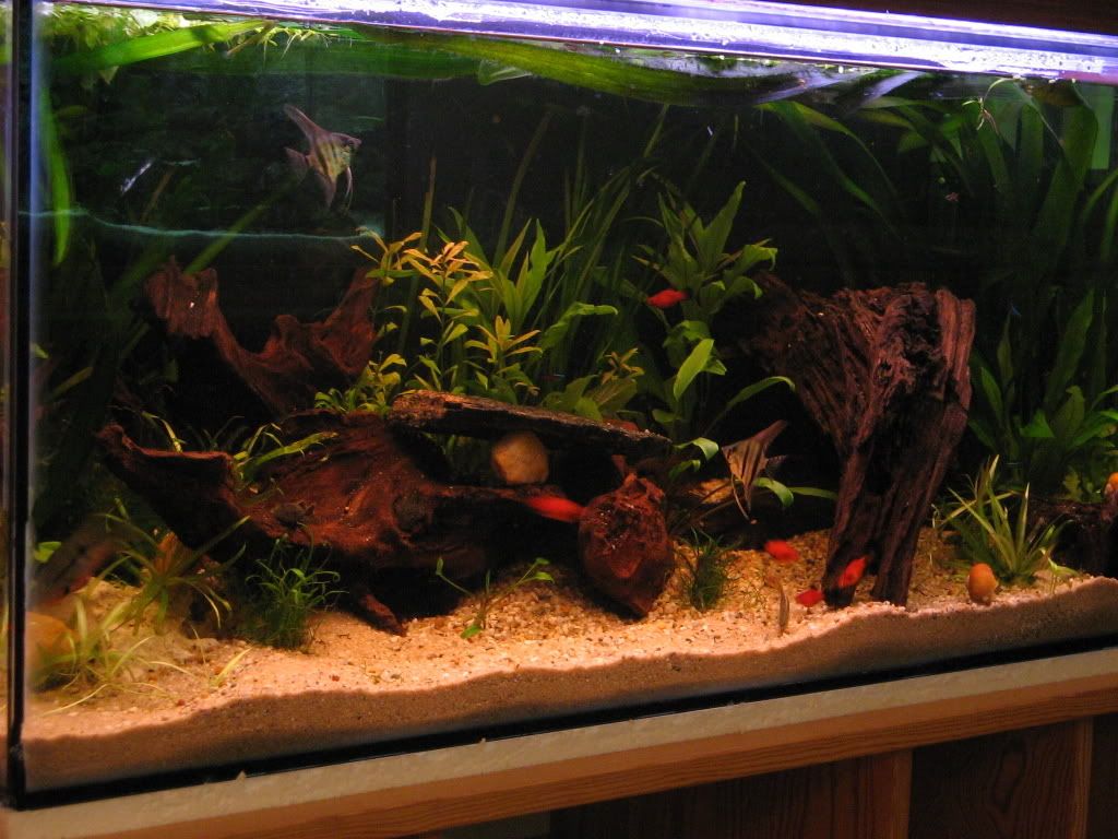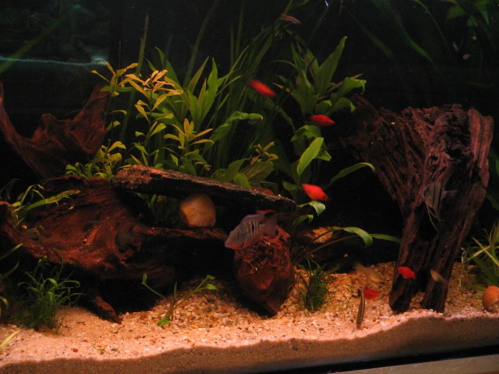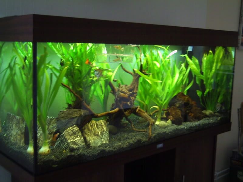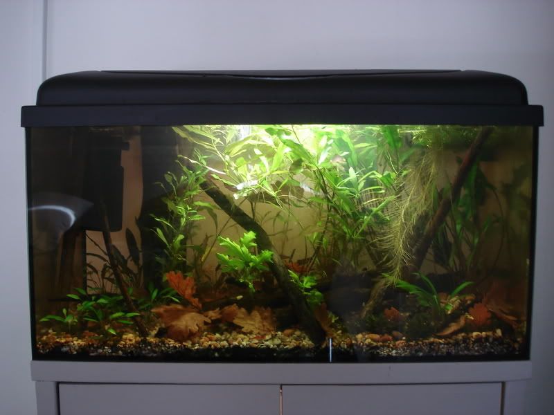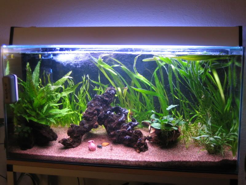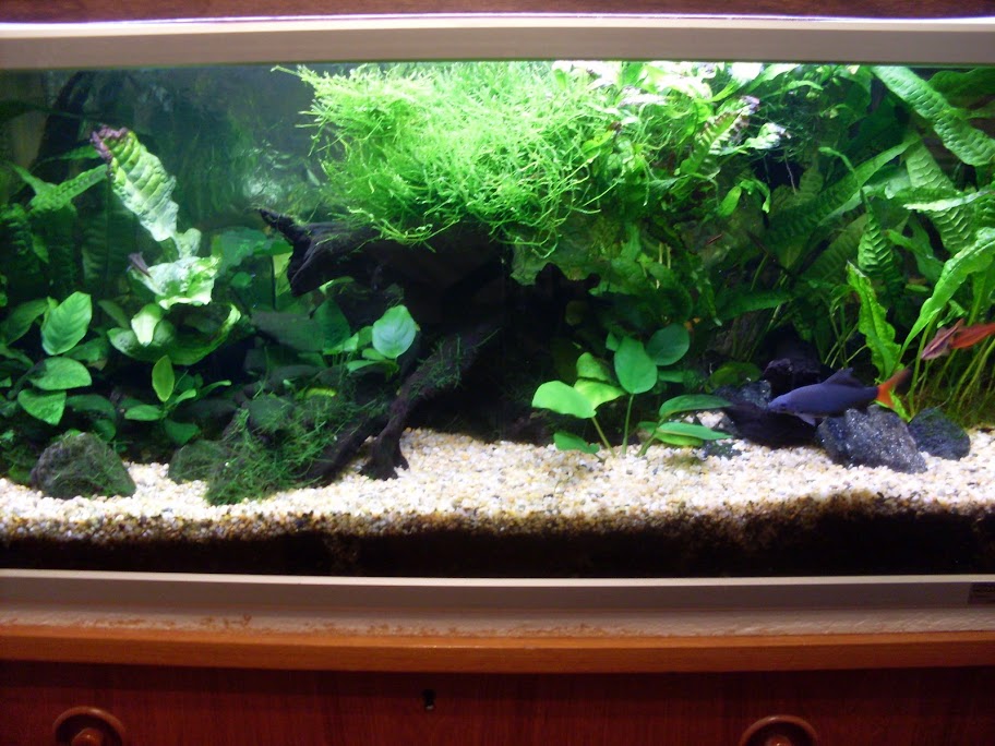 Ålrajt, jag skall se om jag klarar ut dina frågor. Först och främst, när det gäller javamossa, oavsett om det gäller på "pinnar" eller på rötter och stenar... Det som jag enligt erfarehenhet har haft bäst resultat med är att inte ha för mycket mossa, utan fakttiskt mindre mängd - det kan räcka med några "grenar" och att fästa dessa vid de rötter eller stenar o.dyl. där du vill ha javamossan, och att göra detta med någon tråd eller liknande. Vid upprepade tillfällen då jag velat fästa javamossa vid t.ex. rötter har jag använt en så enkel sak som sånahäringa enkla "spännband" som finns att köpa på/i varje välsorterad Ica-affär eller liknande, alltså en tunn plastremsa som du bra drar igenom ett litet "lås" och fäster javamossan med. Givetvis kan du använda vad som helst; vanlig sytråd, gummiband, nylonlina o.s.v. Javamossan sprider sig sedan av sig självt utmed materialet du fäster den på.