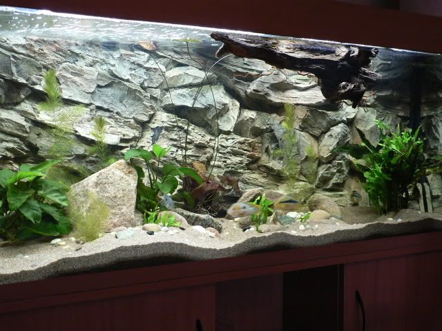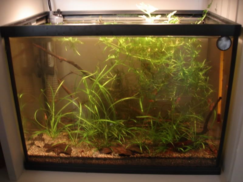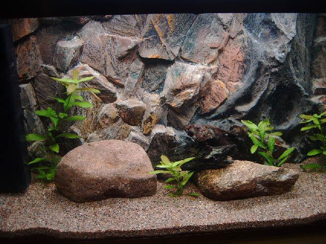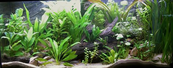 F.ö väntar jag nu på ett par tjockare bamburör som kommer med posten någon gång, så "skogen" blir lite tätare. Sen när växten med massa små "plättar" på, den höga, växt till sig lite ska jag kapa den på mitten och lägga ut bredare, så det blir tätare. Kommer nog bli kanon. Nu blev det luddigt, men hoppas du förstår.