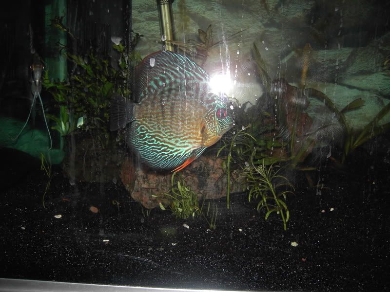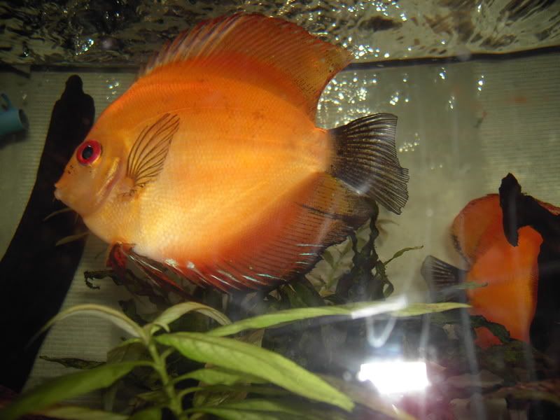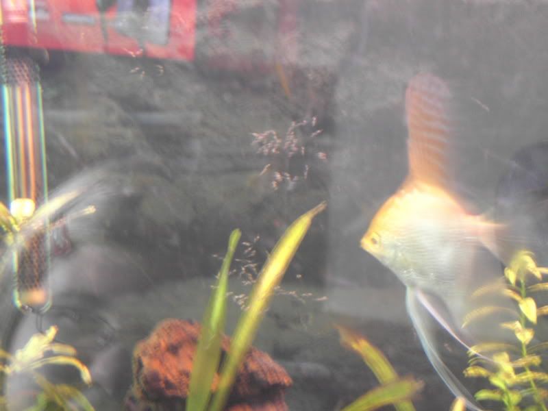 Det är ju två röda honor nu, systrar, som faktiskt delar på en hane. Den aktuella honan, denna gång, har tvingats välja ett skitdåligt ställe att lägga sin rom på - ett svärdsplantablad (för andra gången). De andra attraktiva rötterna och ställena är upptagna (den andra syrran vaktar sin favoritlekplats järnhårt) så hon är helt enkelt tvungen att välja ett blad.