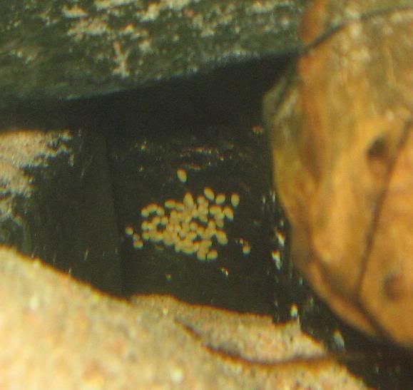 Jag har byggt en liten grotta av stenar som de genast bosatte sig i, men jag vet inte om dem är tillräckligt bra för dem. Den står direkt på sandbotten och de grävt nya gropar runt grotten, fram sidan är nästan helt dölj av sand och de tar bakvägen som de har skapat eller ovanifrån mellan stenarna för att ta sig in.