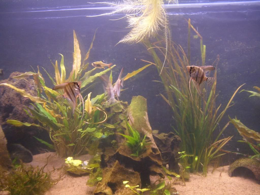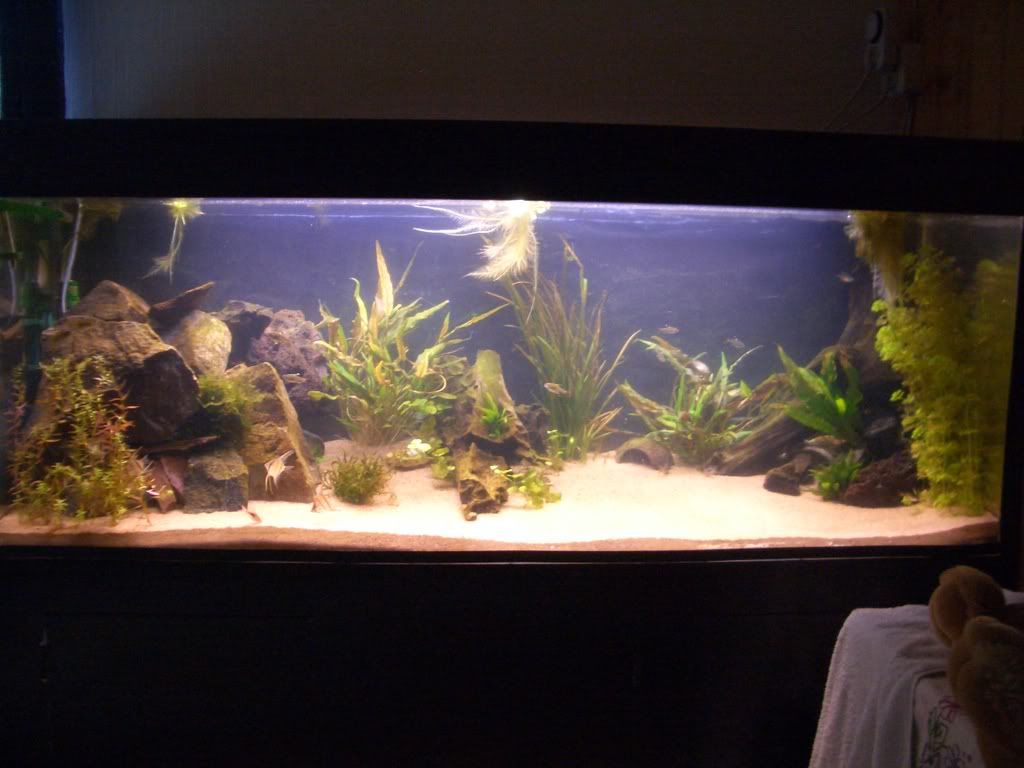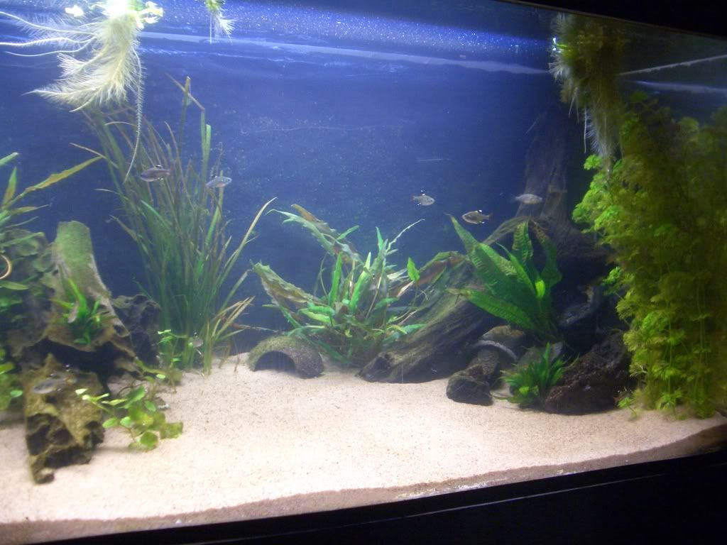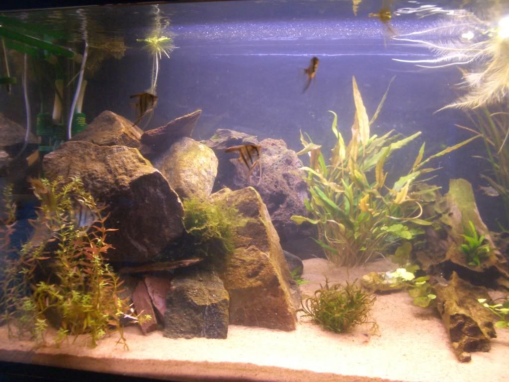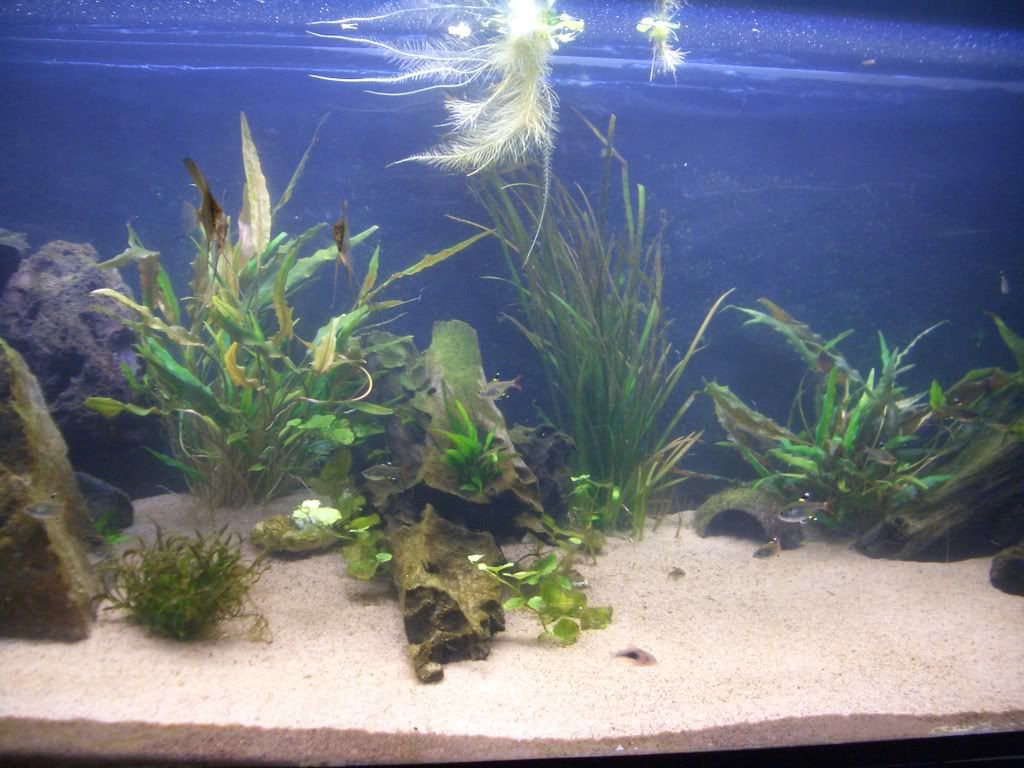 Dock blev det något grumligt när jag flyttade om filtermediet, så det kommer inga bilder nu på hela akvariet.