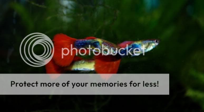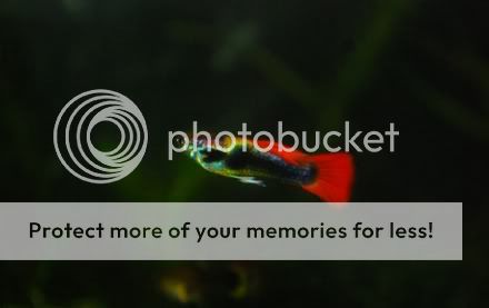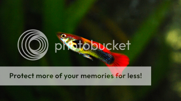 Bågfenorna har bott in sig ordentligt nu, Nyckelhålen växer som vanligt, utan att visa tendenser till att vilja para ut sig, ottisarna är lika galna som vanligt och guppysarna har flyttat ut till den problematiska lilla kuben. Båda mina hanar har dött, vilket dock inte verkar bero på själva akvariet. De två honorna som är syskon går nu själva i kuben, tillsammans med ca 15 yngel, hälften 2-3 veckor gamla och hälften någon dag. Ska spana efter unga hanar lite varstans, även om det inte är särskilt brottom. Tyvärr lyckades jag få min fina, svartorgangegula hona att ta självmord. Hon hoppade ur burken jag använde till att flytta över henne från storakvariet till kuben och jag märkte det inte förrän hon var död och hunden nyfiket försökte slicka i sig henne genom burgallret ... Någon ny hane får bli den som för in lite nya gener. Ynglen planerar jag att placera i storakvariet när de är tillräckligt stora för att inte bli uppätna, låta dem växa till sig och färga ut, och sedan försöka byta bort dem i någon Djuraffär.