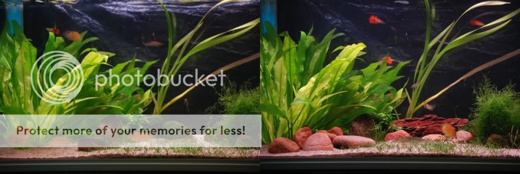 Tack Nubi och Jens :) Är faktiskt riktigt nöjd med hur akvariet ser ut, bortsett från att svärdsplantorna i väntra delen av akvariet aldrig verkar vilja samarbeta! Funderar på att leta rätt på en härva med grenar kvistar och se om det går att arrangera på något bra sätt. Djurmagazinet har specialpris på redmoore-liknande rötter, som faktiskt var riktigt snygga, men jag är