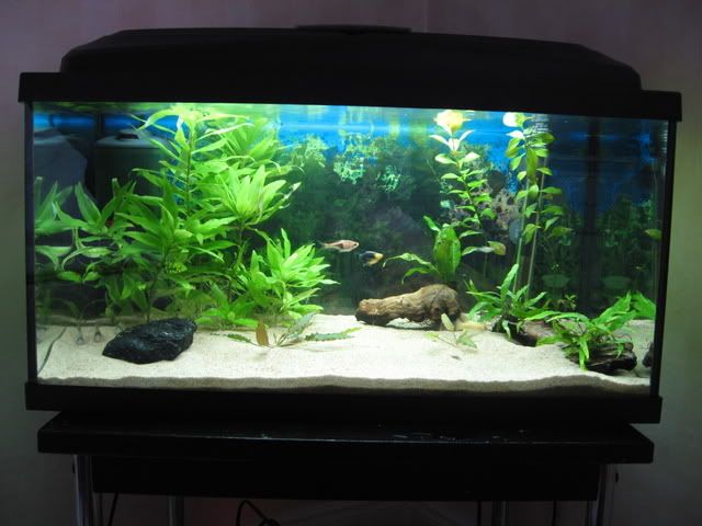 jag har ett 54L akvarium med 2 platy, en kilfläcksbora som snart ska få några kompisar, en ancistrus.