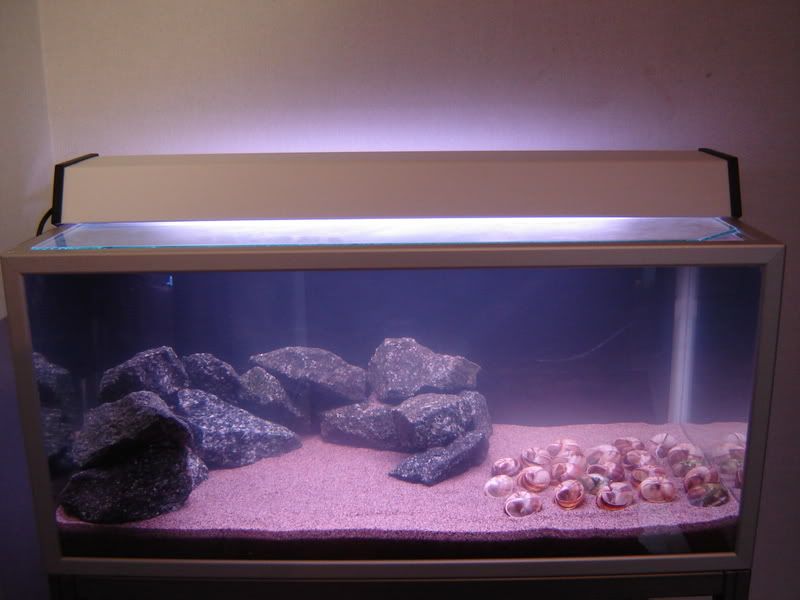 5. De små kalkstenarna (funkar med vilka som helst egentligen) är till för snäckorna att "landa" på så det uppstår lite utrymme mellan snäckorna och bottnen som ynglen kan ta skydd i.