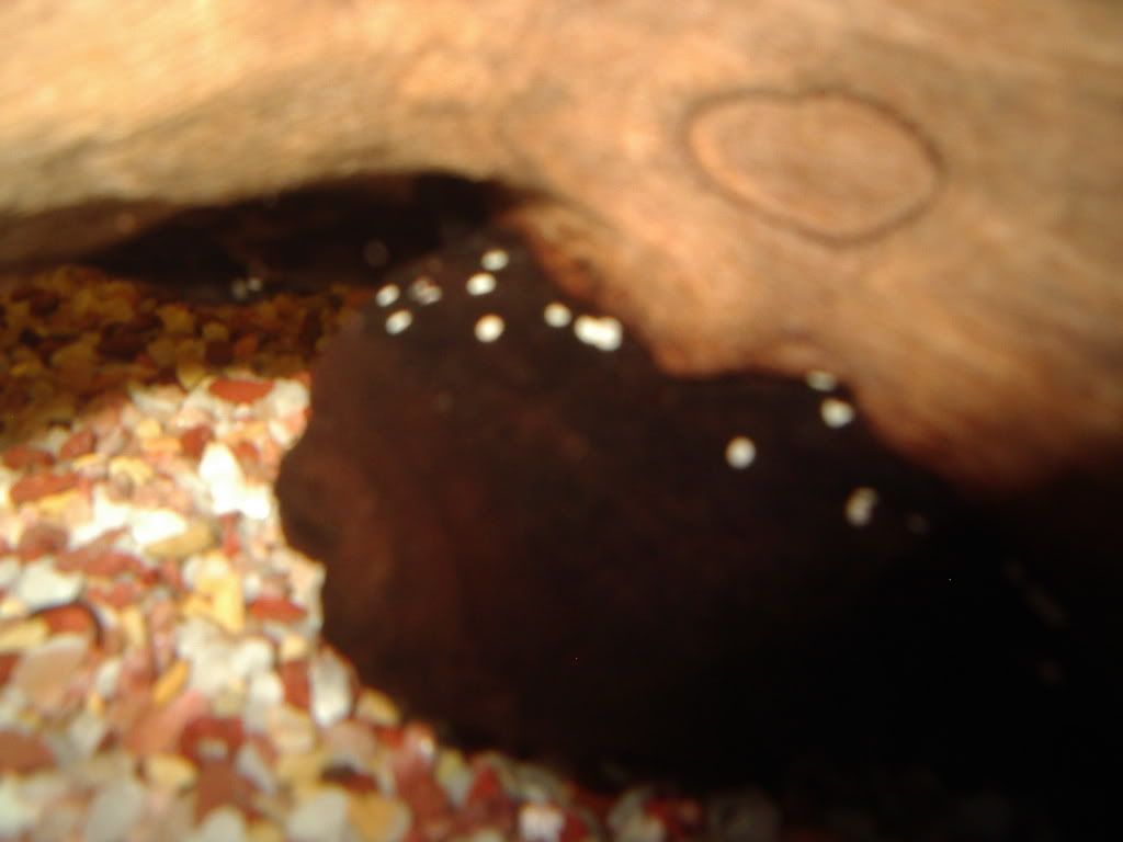 Sniglar är bara bra att ha, men skulle tvivla att det är snigelägg den lagt på roten då din molly också har prickar på sig. Köpa "en" praktbotia är ingenting jag rekommenderar, är den själv kommer den bli agressiv och må väldigt dåligt, och den kan stressa / skada dina andra fiskar.